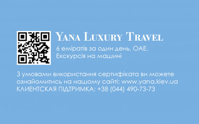 Маршрут екскурсії пройде через найменший емірат – Аджман, палацовий музей шейха емірату Умм Аль Кувейн. Потім, можна буде помилуватися горами Рас Аль Хайми, скупатися в океані, зробити безліч чудових фото. Подарункові сертифікати завжди є в наявності, тому це чудовий презент до будь-якого свята.