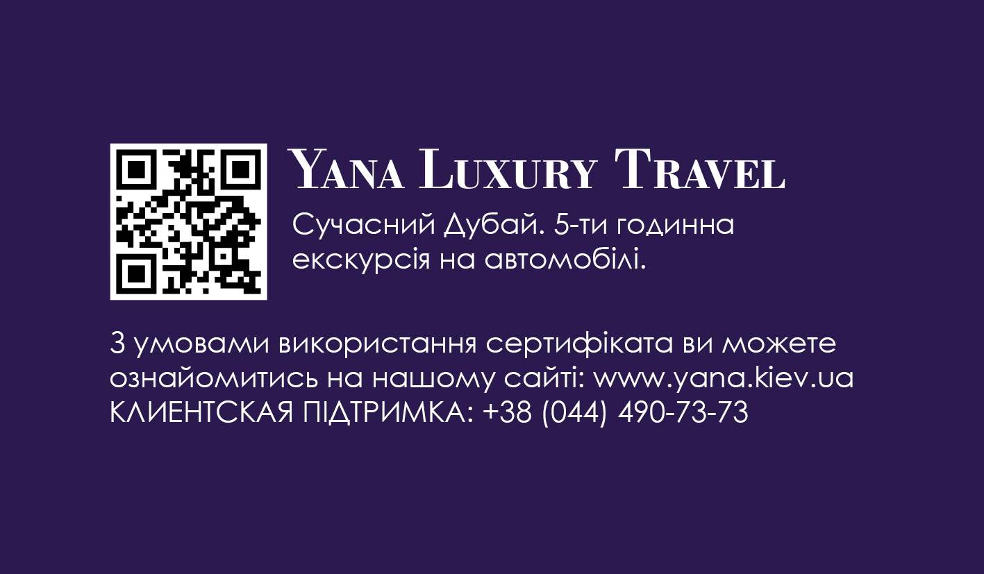 Такий сертифікат - це чудова можливість "з вітерцем" проїхатися найцікавішими місцями емірату, або змінити маршрут відповідно до своїх інтересів, побачити всі пам'ятки міста, познайомитися з їхньою історією та культурою, пізнати магію вечірнього Дубаю або вирушити на автомобільну прогулянку вздовж мальовничого морського узбережжя.