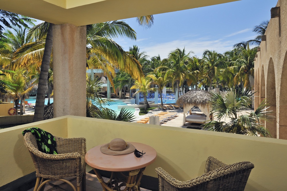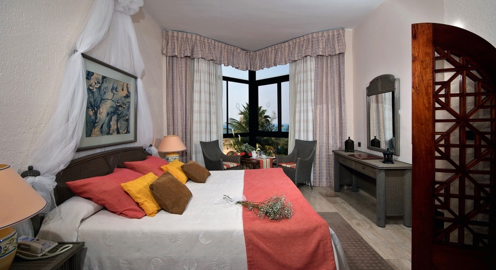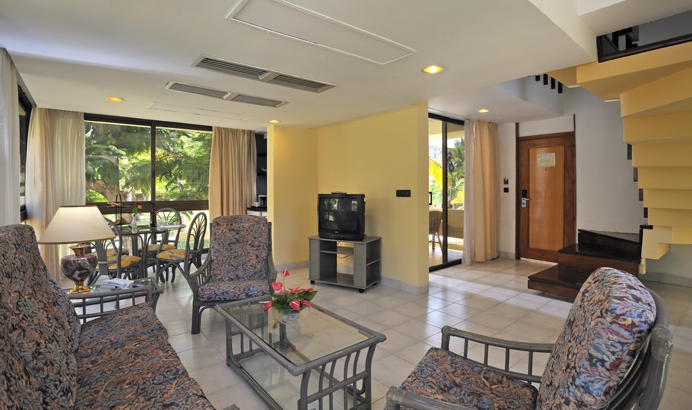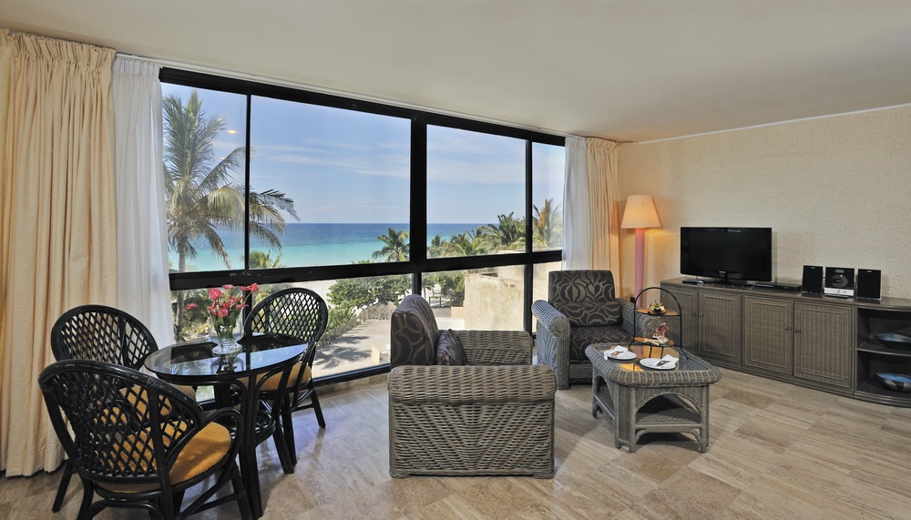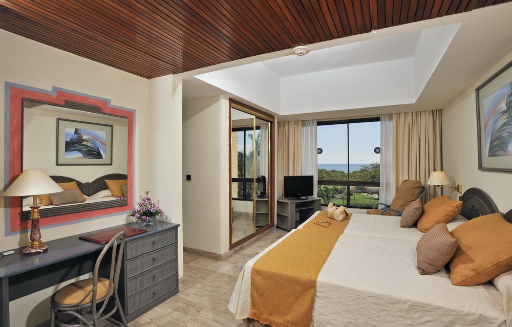 Полулюкс (80 кв. м): балкон або тераса, суміжна, спальня з вітальнею (кримінал-розмір), ванна кімната з гідромасажною ванною. Додатково: обладнання для чаю і кави, халати, тапочки. Вид на гольф, сади і частковий вид на океан.
