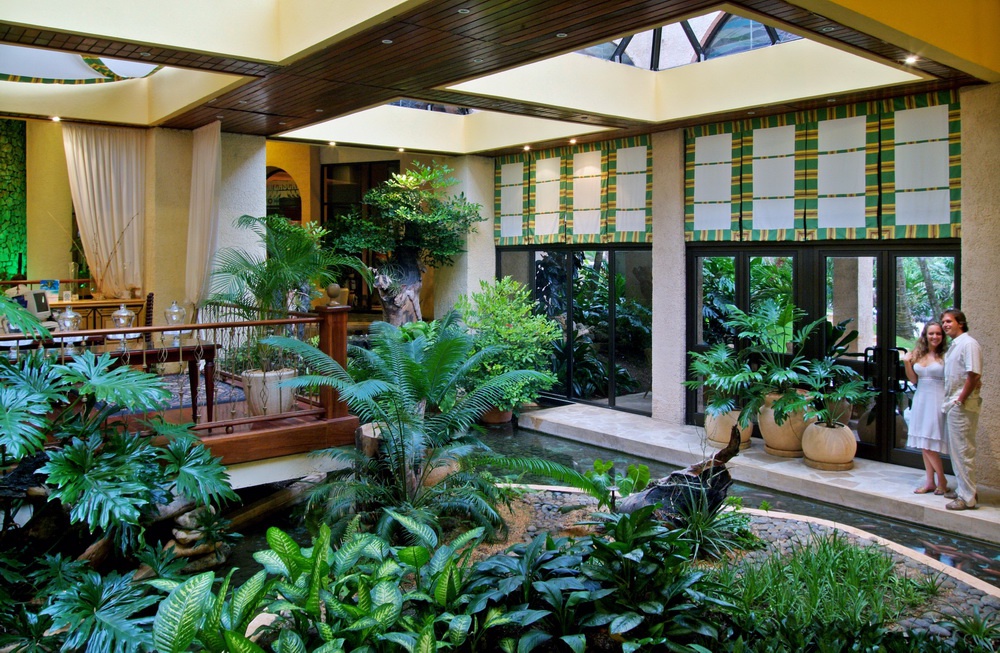 Полулюкс (80 кв. м): тераса, шиття, міні-кухня, спальня з king-size, ванна кімната з гідромасажною ванною. Додатково: обладнання для чаю і кави, халати, тапочки. Номери відкриті: спальня і ванна кімната не відокремлюються. Вид на сади, поле гольфу і океан.
