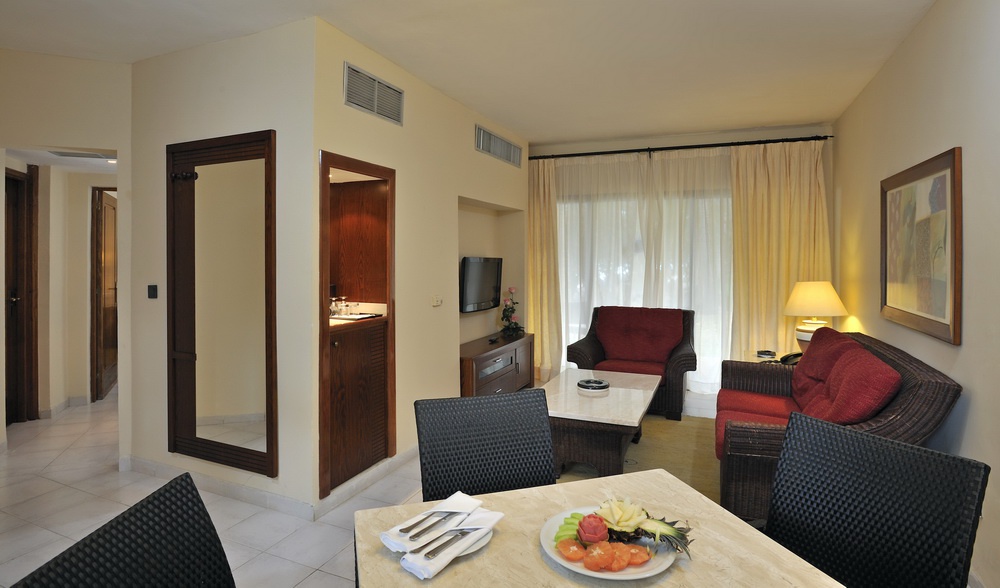 Полулюкс (60-104 кв. м): тераса (в чотири номери), вітальня, міні-кухня, спальня з двоспальним ліжком або двома окремими ліжками, 2 санвузли (все з ванною). Додатково: обладнання для чаю і кави, халати, тапочки. Як сади або басейни. Деякі номери дворівневі.