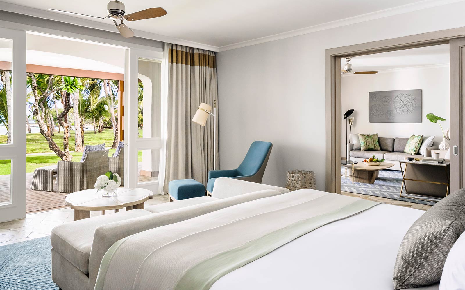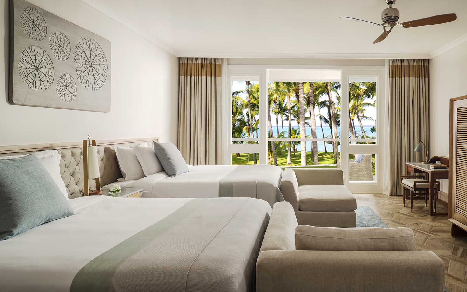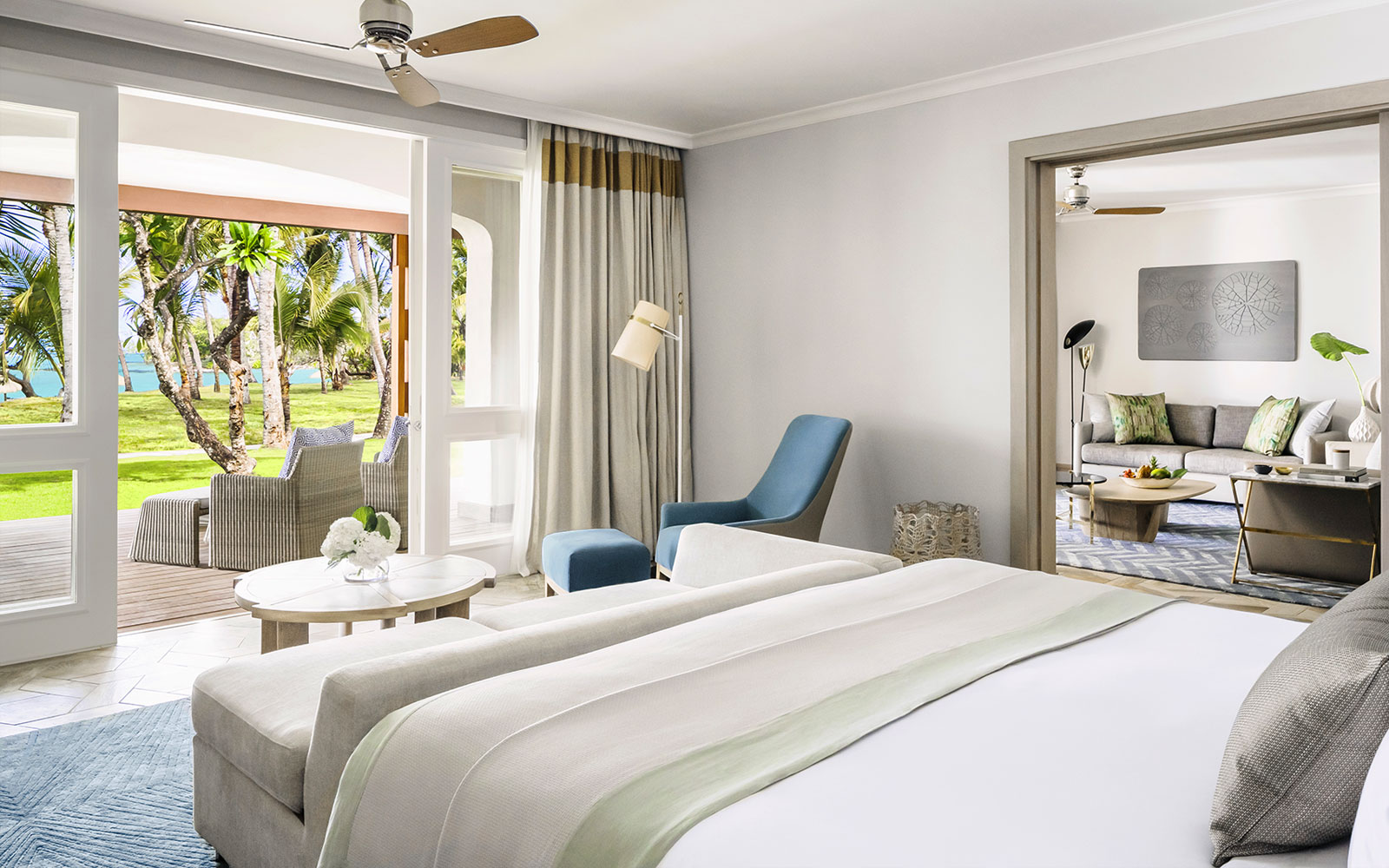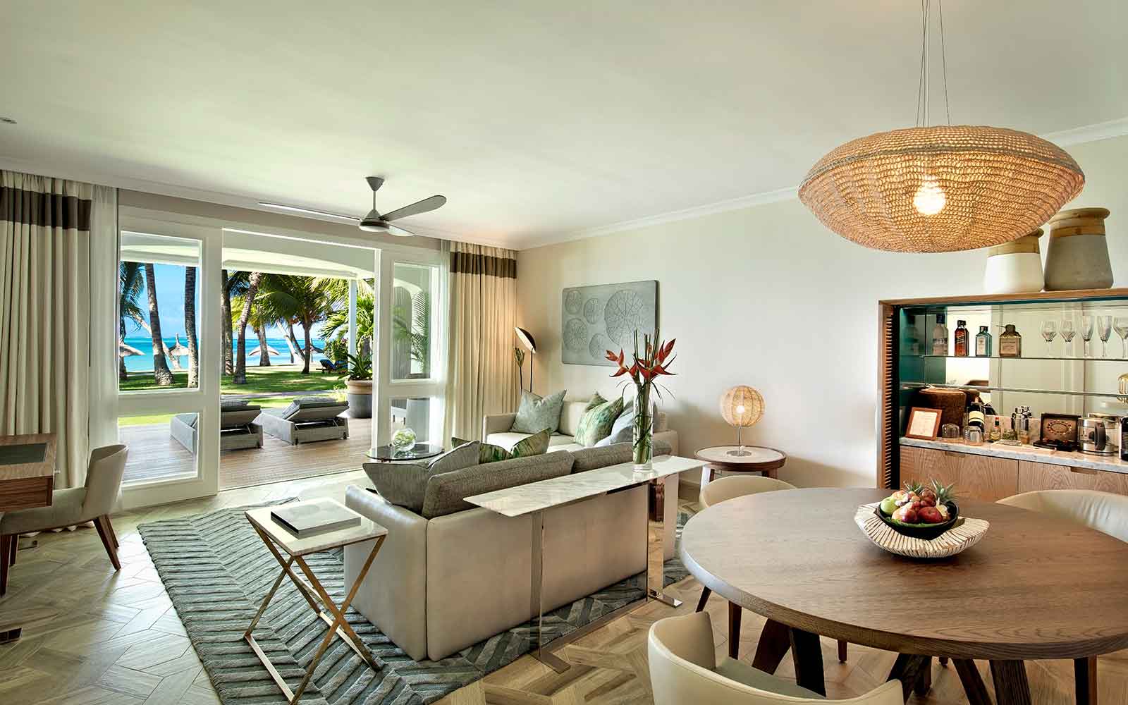 У готелі є 163 комфортабельних номера різних категорій, включаючи 100 Junior Suites, 48 ​​Junior Suites Beach Front, 14 Ocean Suites, 1 The Villa. У номерах – елегантні інтер'єри у світлих сонячних тонах, що поєднують витонченість французького колоніального стилю та самобутність традицій Маврикія: оздоблення з натурального дерева, підлога, викладені плиткою, витончені меблі та вишукані елементи декору, з терас та балконів відкривається чудовий краєвид на океан та сади. Всім гостям надаються послуги дворецького.