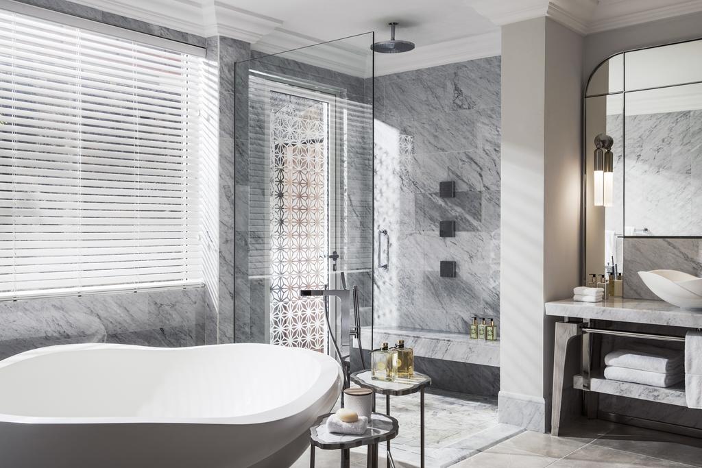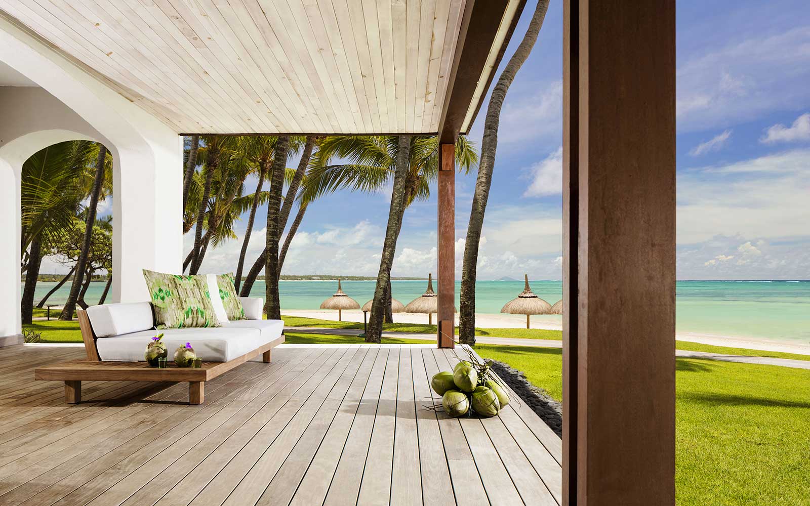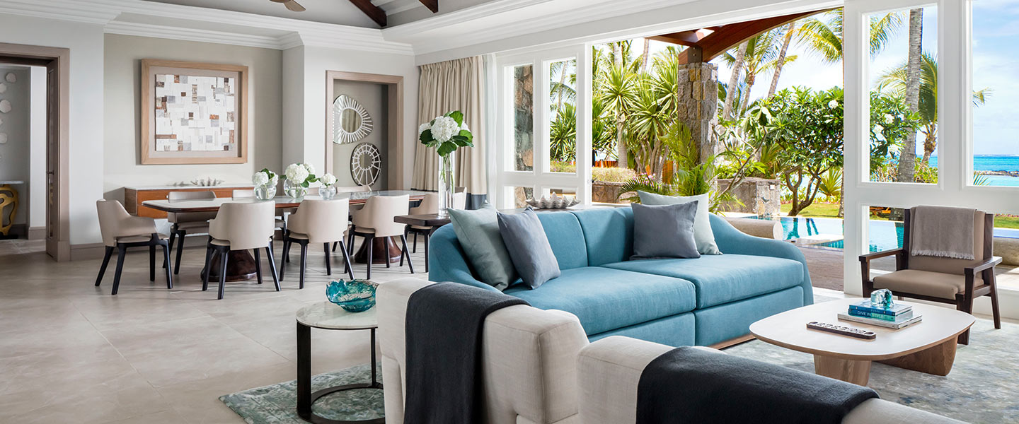 Елегантний готель One&Only Le Saint Geran знаходиться на приватному відокремленому півострові в оточенні густого тропічного кокосового саду з екзотичними квітами і білим пляжем протяжністю 2 км, що омивається лагідним Індійським океаном. Великі вишукані номери з терасами дозволяють своїм гостям насолоджуватися чудовими панорамами на океан та сад. Номери оформлені в світлих тонах і обставлені вишуканими меблями, декоровані такими натуральними матеріалами як: рідкісні породи дерева і мармуру, розкішні тканини. В номерах Ocean Suite є душ, що знаходиться на відкритому повітрі, а вілла, яка стоїть біля самого океану, має приватний басейн. Гості вілли можуть скористатися послугами кухаря та дворецького.
