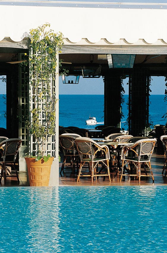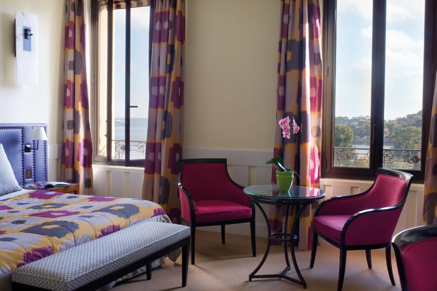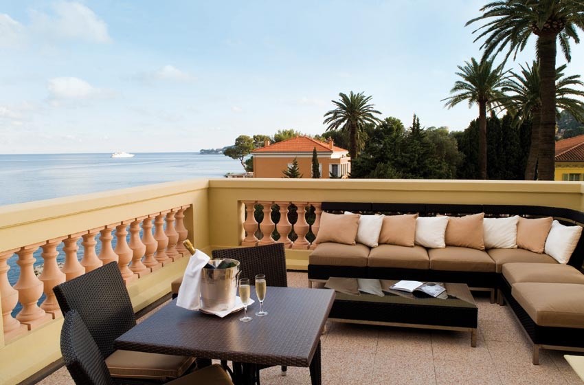 Вестибюль вражає своєю пишністю! Мармурова підлога з картатим малюнком із чорної та білої плитки, дерев'яні панелі блідо-зеленого кольору на передній стороні стійки у приймальні. Сад Ренесанс створений знаменитим ландшафтним архітектором Жаном Мюсом рясніє апельсиновими деревами та кущами лаванди, ароматами лайма, вербени. Можна пройтися уздовж оливкових дерев у бік бельведера, щоб помилуватися чудовим видом на бухту Фурмі та віллу Керілос.