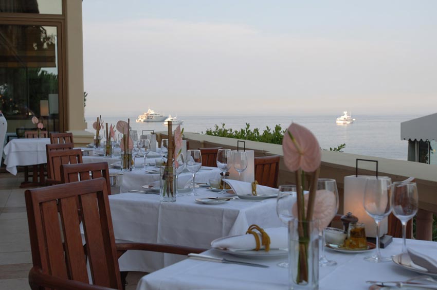 The Jasmin Grill & Lounge розташований біля басейну, звідки відкривається захоплюючий вид на море і віллу Керілос.