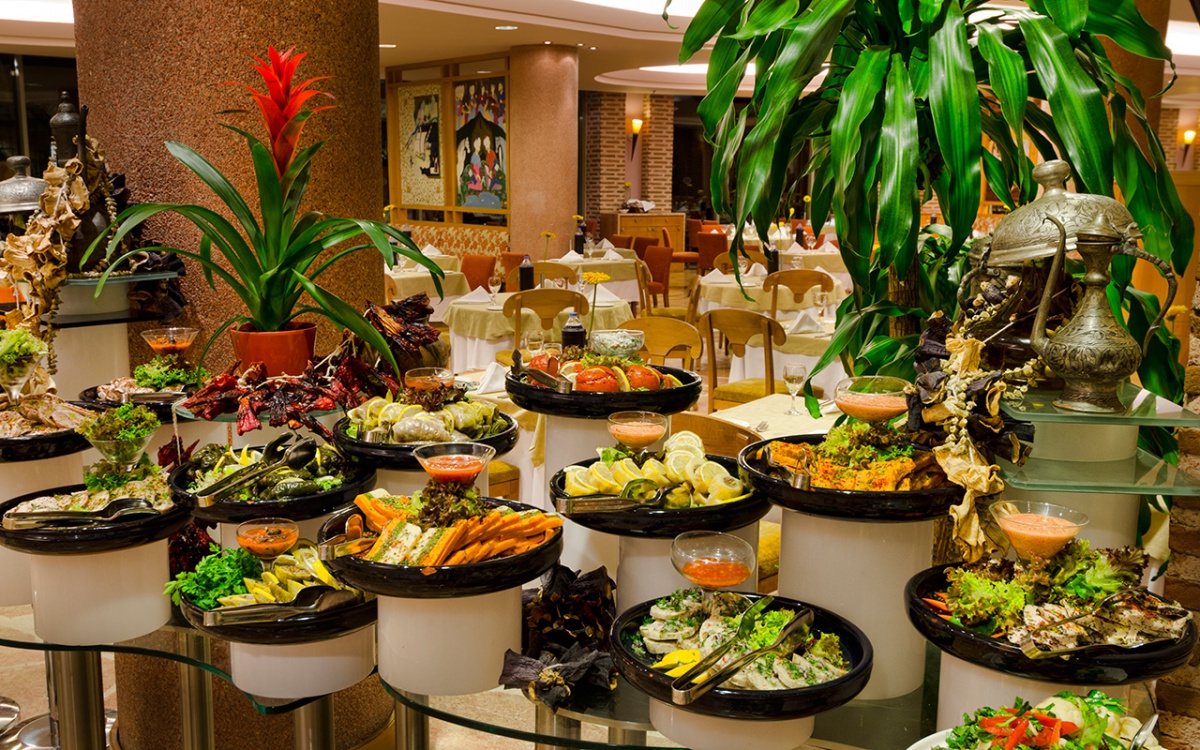 Шведський стіл, що складається зі страв європейської, турецької, східної, мексиканської кухні, приваблює відвідувачів ресторану Mythos. Ресторан пропонує терасу.