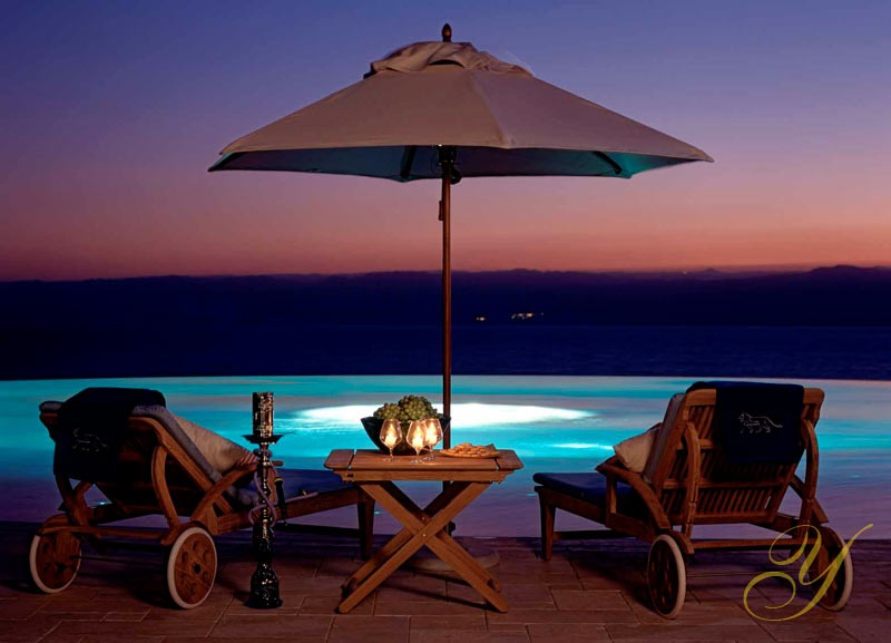 Ishtar royal villa (475 кв.м): двоступінкова вілла. Внутрішній палац, відкритий басейн і джакузі тераса, 2 гості, їдальня, кухня, SPA-салон (кімната, сауна, душ), 3 спальні, 3 санвузли (все з ванною та окремою душовою кабіною). Чи можна об'єднати з пляжним шале Ishtar. Особистий вал і хауф. Ці номери мають спеціальні привілеї.