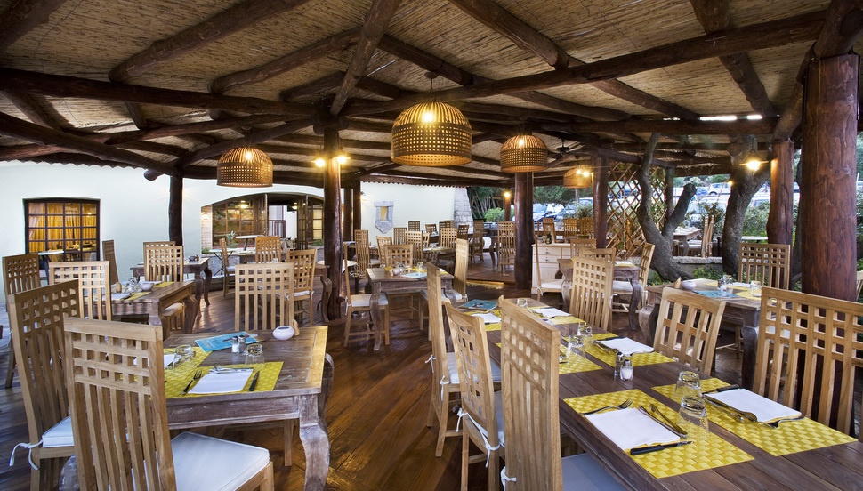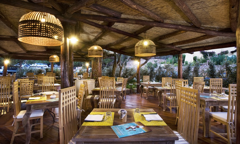 На затишній дерев'яній веранді ресторану Pergola можна пообідати та помилуватися видом на гавань та центральну площу Порто-Черво.