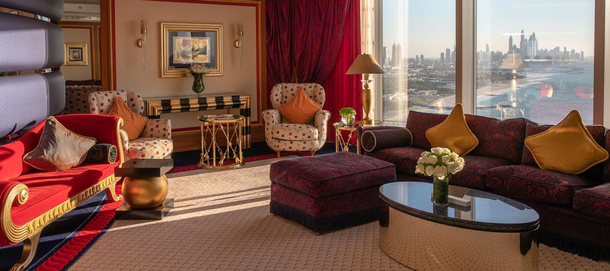 У Burj Al Arab гості можуть насолодитися розкішшю в аравійському стилі, сервісом, який відповідає світовим стандартам категорії 5 зірок. Вишукані та ексклюзивні матеріали, які використовуються в дизайні номерів, перенесуть Вас у розкіш султанських палаців, занурюючи в казкову атмосферу Дубая.