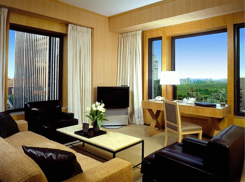 Полулюкс (139 кв.м): балкон, вітальня, спальня з двоспальним ліжком king-size, зона гардероба, ванна кімната з ванною та душем, гостьова кімната. Крім: фортепіано (у деяких числах), камін. На 51 поверсі. Вид на місто та Центральний парк.