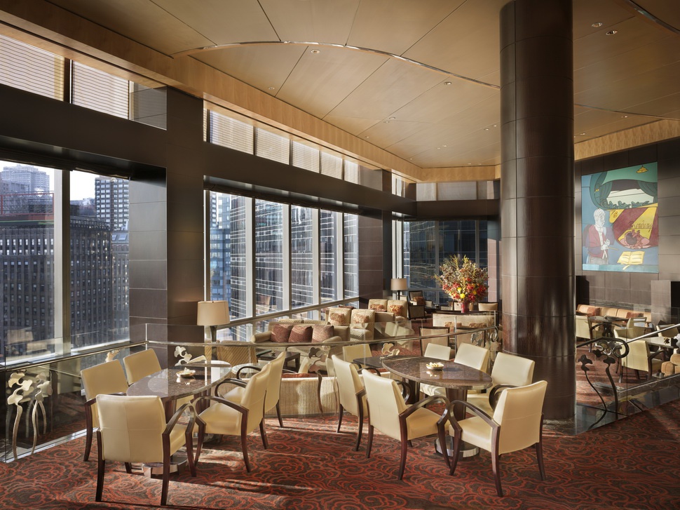 Лобі Лаунж - в класичному стилі, блідо-солітні і коричневі тони, а світлий східний акцент на ресторані знаходиться на подрібнених шоколадних відтінках. Це ідеальне місце для вечірнього чаю або вечірнього десерту, і, звичайно, для любові Панорама Манхеттен.