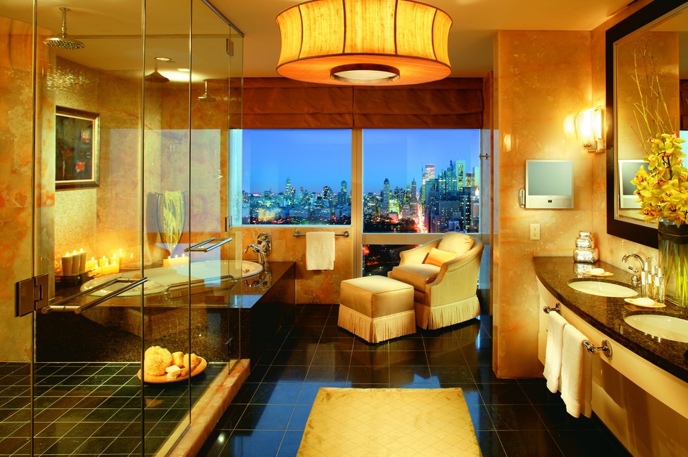 Полулюкс Двомісний номер: 38 кв.м. Від 43 до 54 поверху складається з спальні з двома ліжками і двоярусною ванною кімнатою. Номери з панорамним видом на Манхеттен оформлені в світлі, біженці, коричневих і білих тонах. У ванній кімнаті, з якого починається фантастичний огляд міста, розсіюється мармуром і гранітом.