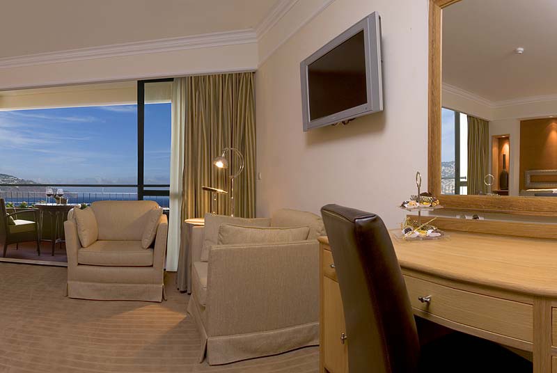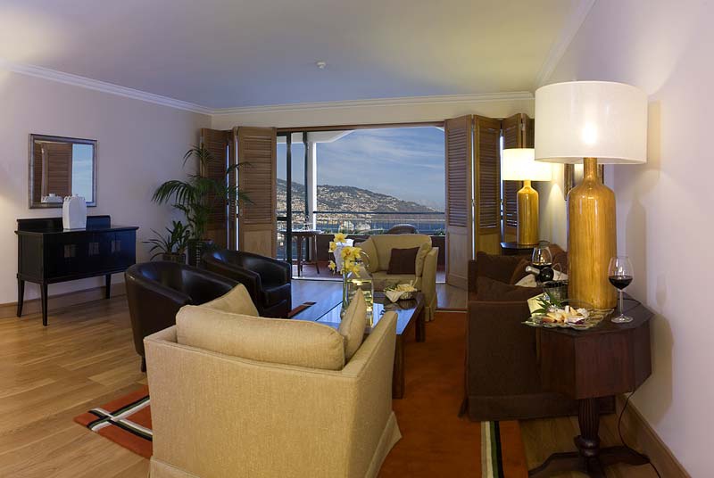 Полулюкс: - 112 кв.м1 часй З залу спальня з двома двоспальними ліжками, вітальня з обідньою зоною, ванна кімната з гарячою ванною, окремий душ і туалет, гостьовий номер.Ванна кімната, шафа, панорамний балкон на затоці Фуншалла. Три людини. Додаткові послуги надаються готелям.