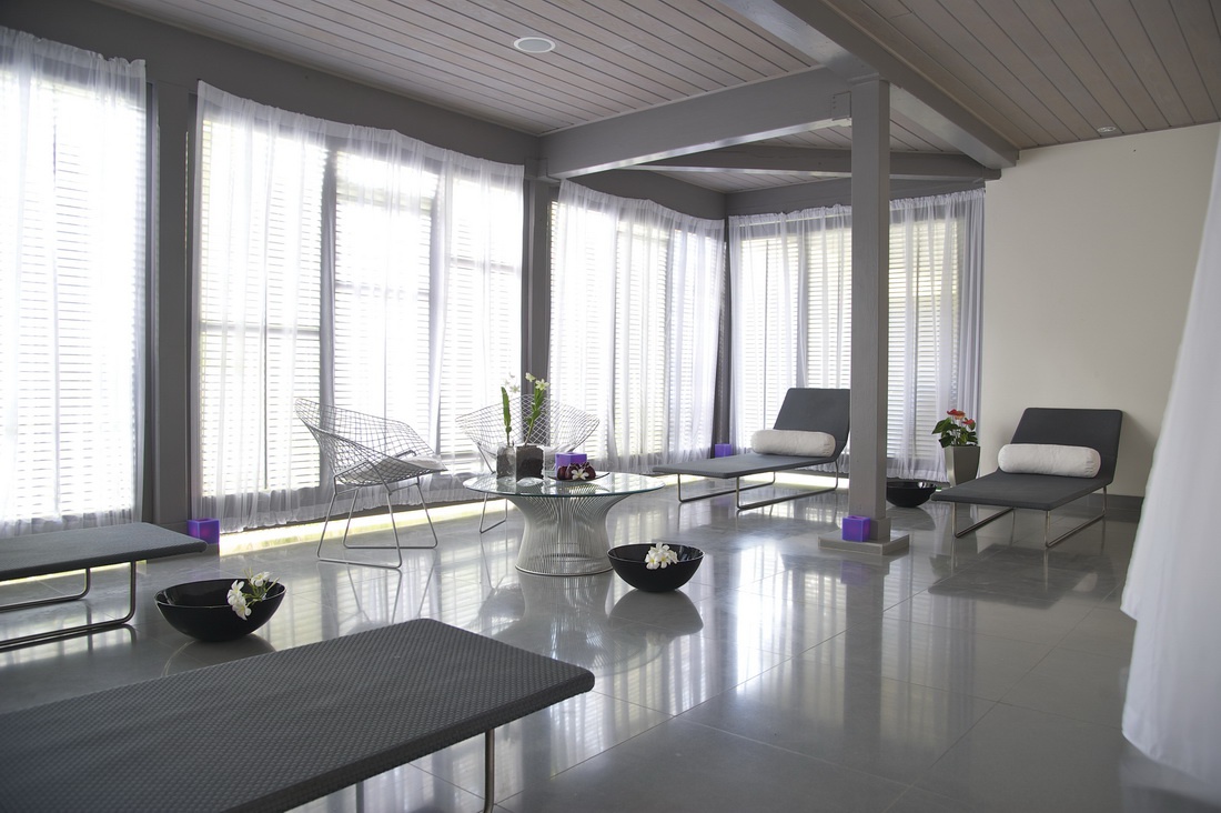 Полулюкс: (68 кв. м) складається з спальні з вітальною зоною, офісом, санвузлом з видом на сад, розрахованого на проживання двох дорослих.