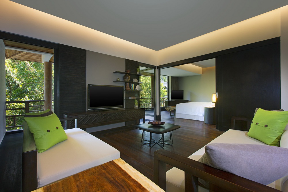 Полулюкс:43 кв.м. З спальні з двоспальним ліжком або двома ліжками і двоярусною зоною відпочинку, санвузлом, плитою з панорамним видом на тропічні зелені.