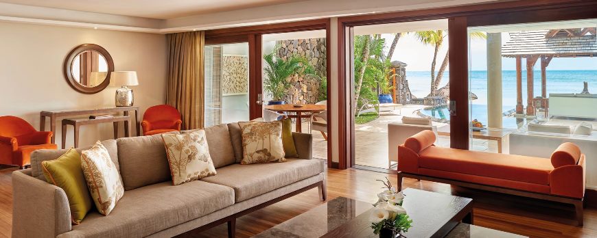 263 кв.м. Ці просторі апартаменти мають дві спальні з окремими ванними кімнатами, вітальня розділена на робочу та зону відпочинку. На просторій терасі можна насолоджуватися маврикійськими заходами сонця та вечерею під зірками. Номер передбачає проживання двох осіб, або сім'ї з 2 дорослих та 2 дітей.