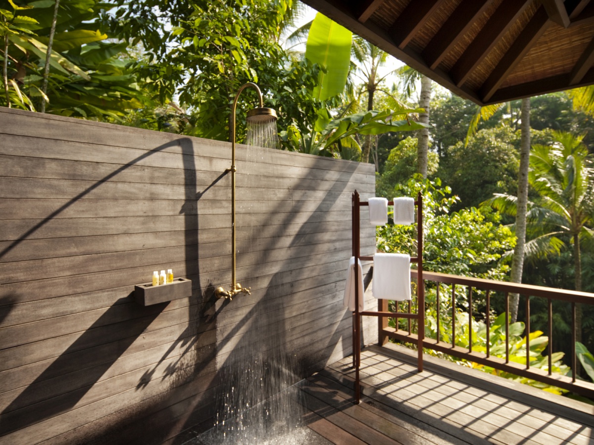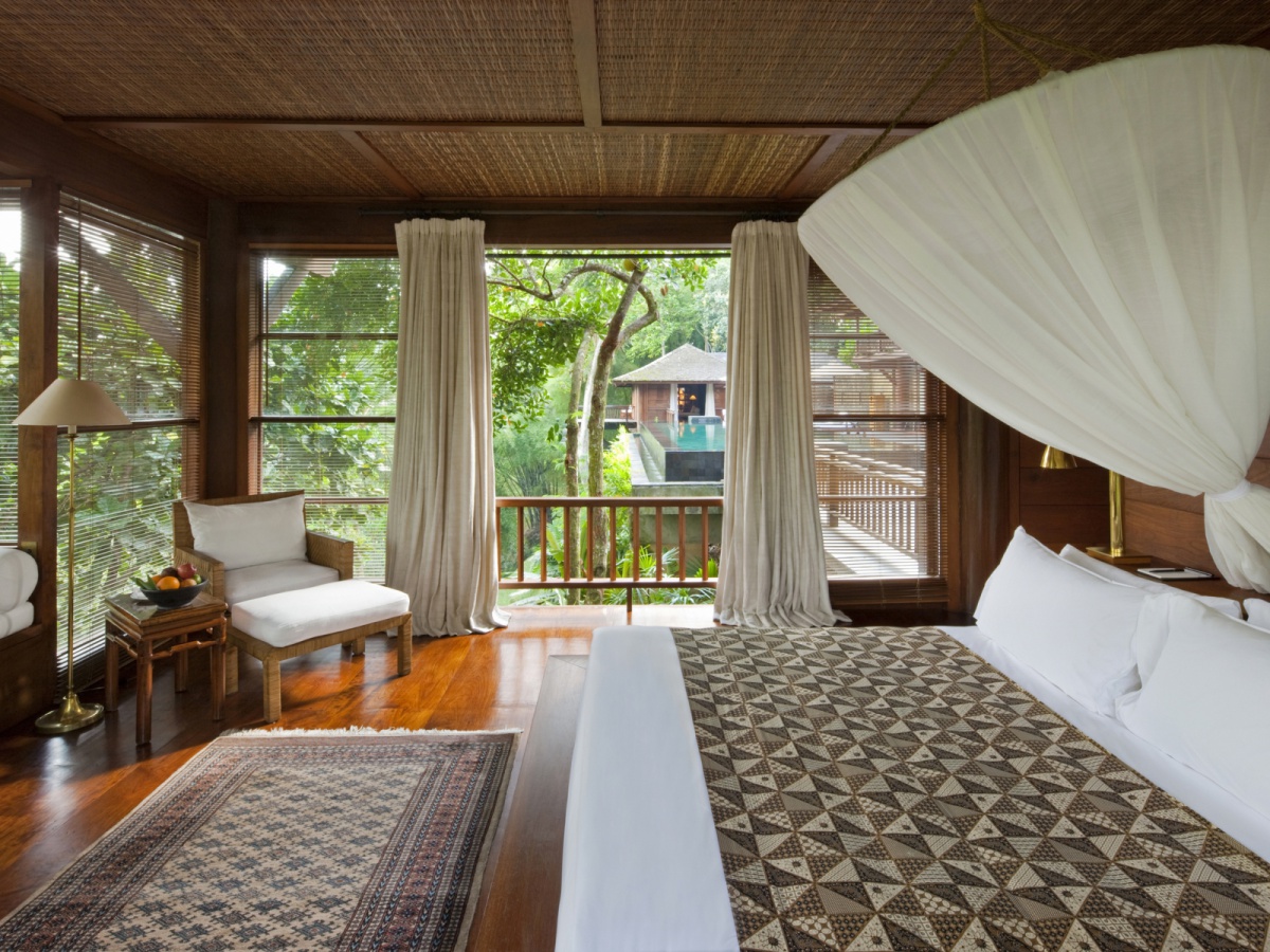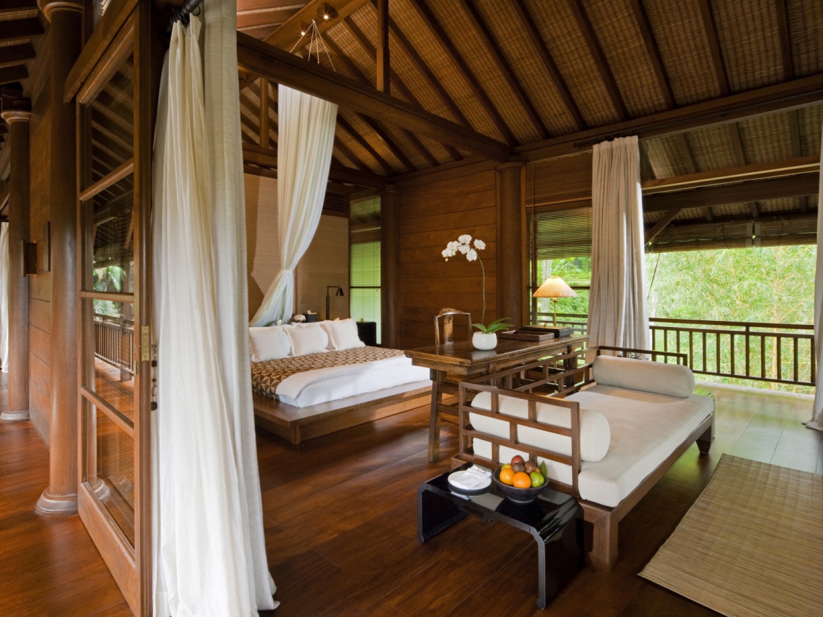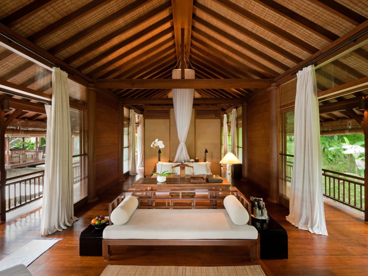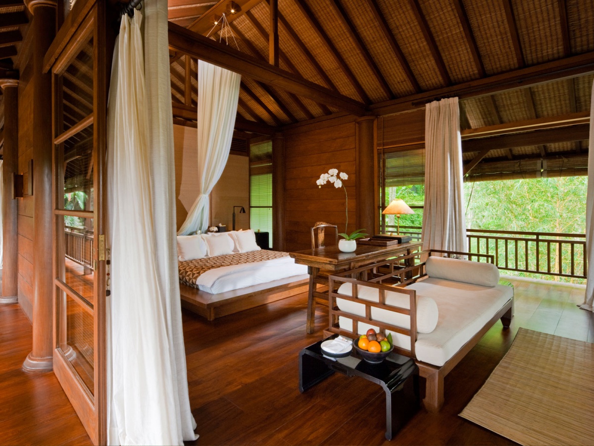 Резиденція Wanakasa. Ця резиденція, назва якої означає "Туманний ліс", потопає в зелені дерев. Напівкруглий край приватного басейну резиденції повторює вигин річки Аюнг, що протікає на 100 метрів нижче. Дах головного житлового павільйону та басейну підтримують колони з товстих стовбурів дерева бангкірай, тикові підлоги та гонтові дахи із залізного дерева створюють атмосферу розкішного лісового притулку. Резиденція включає великий головний номер - люкс COMO Shambhala Suite з власним джакузі, два люкси Terrace Suite, два номери Garden Room та кабінет, який може бути перетворений на додаткову спальну кімнату або процедурний кабінет.