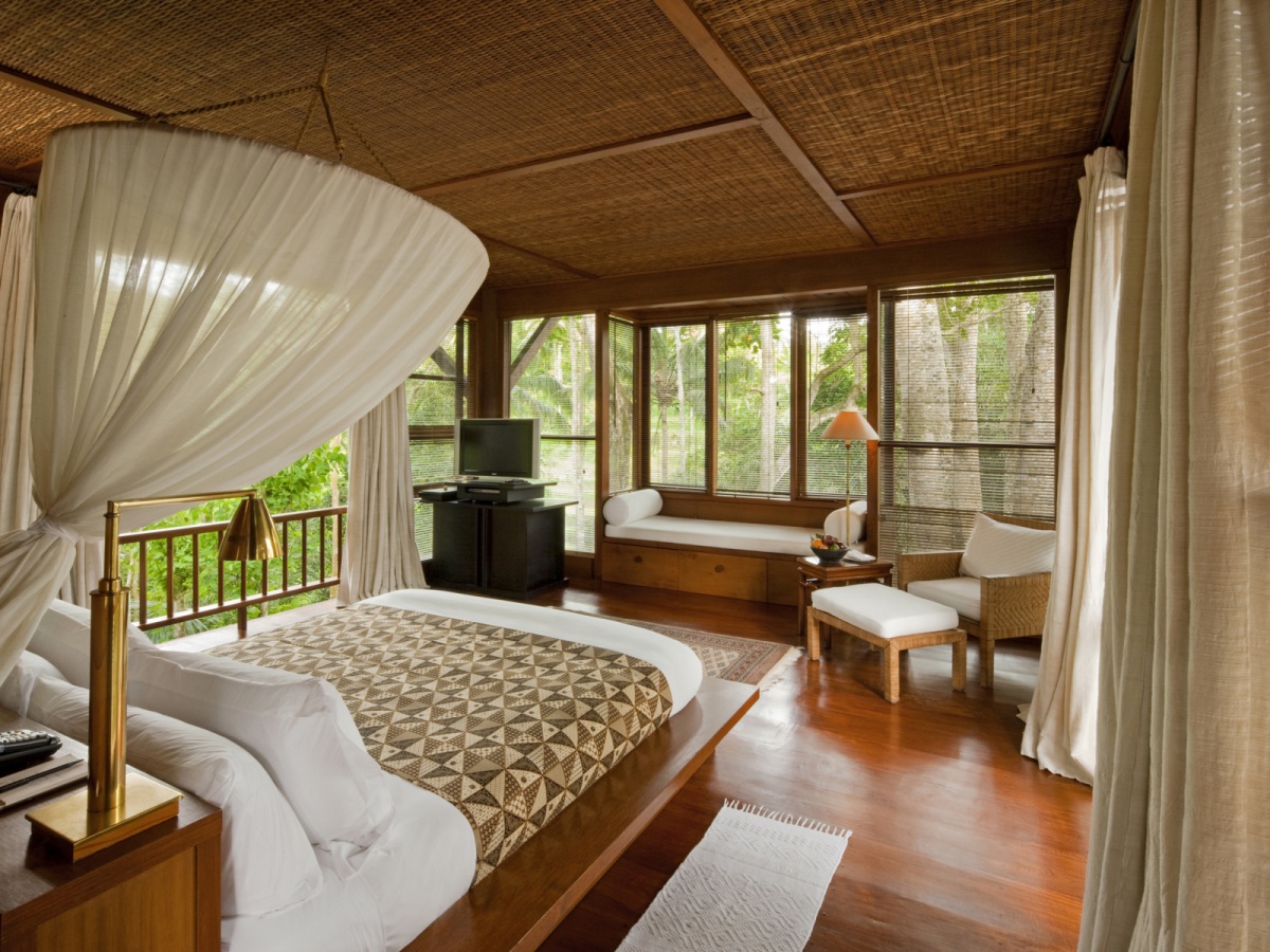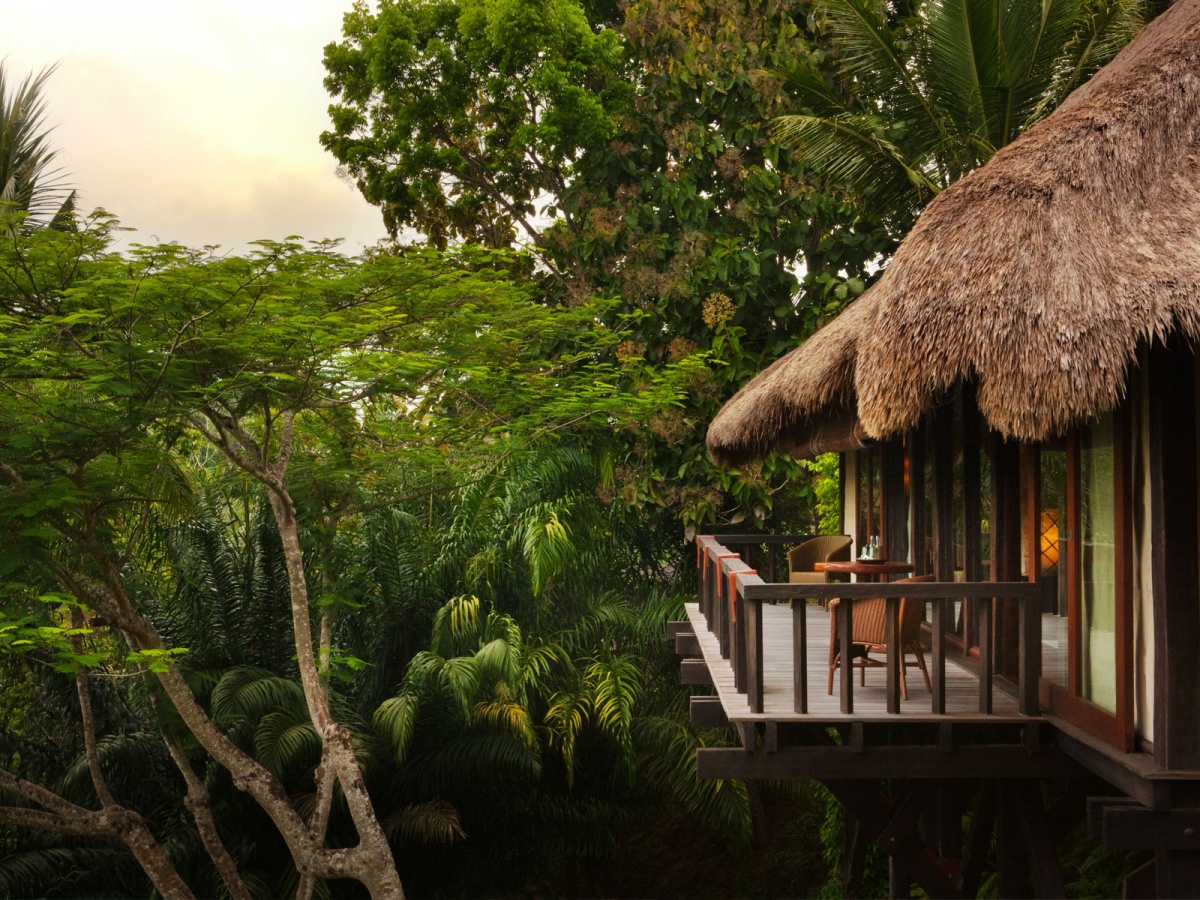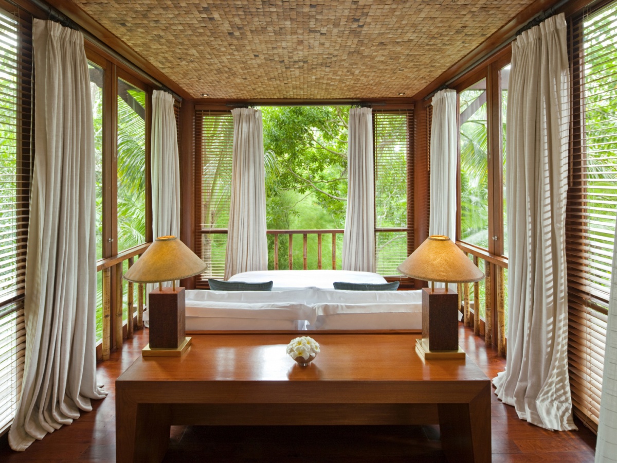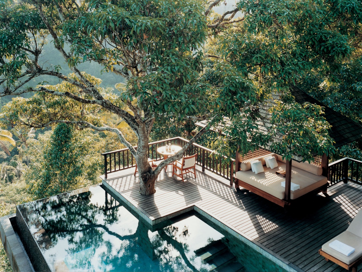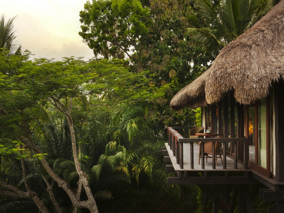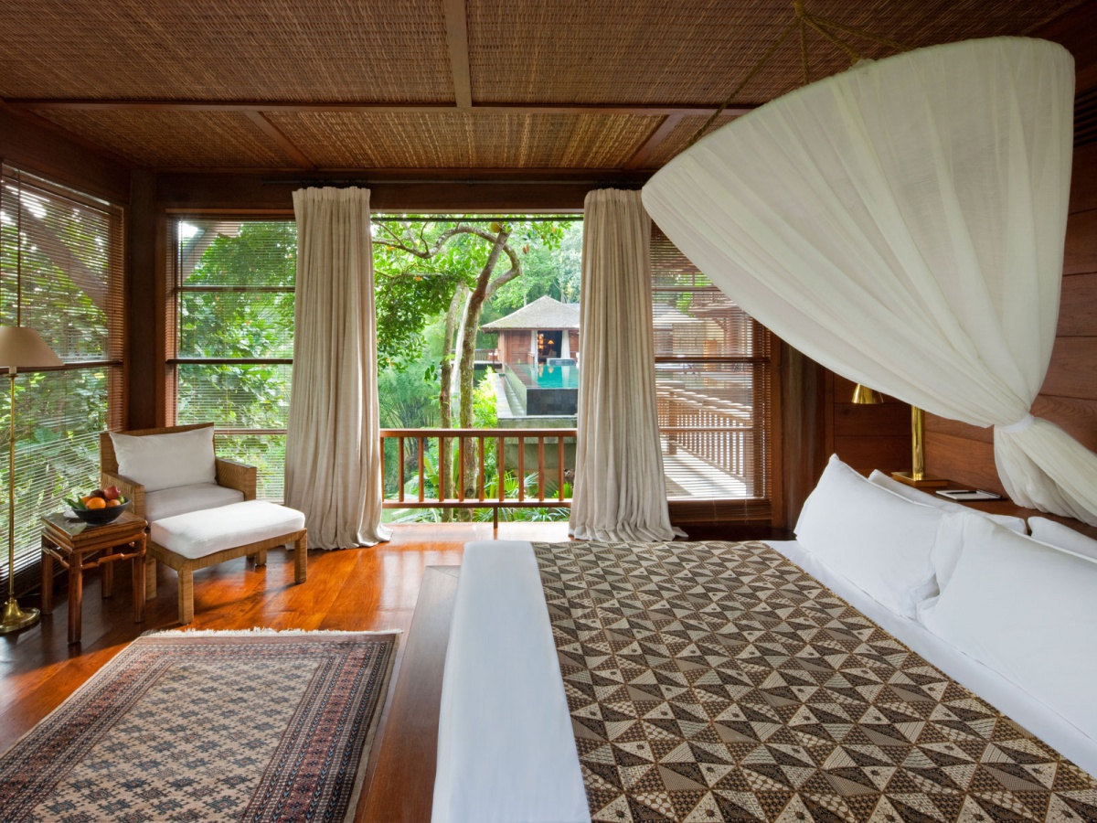 Резиденція Wanakasa. Ця резиденція, назва якої означає "Туманний ліс", потопає в зелені дерев. Напівкруглий край приватного басейну резиденції повторює вигин річки Аюнг, що протікає на 100 метрів нижче. Дах головного житлового павільйону та басейну підтримують колони з товстих стовбурів дерева бангкірай, тикові підлоги та гонтові дахи із залізного дерева створюють атмосферу розкішного лісового притулку. Резиденція включає великий головний номер - люкс COMO Shambhala Suite з власним джакузі, два люкси Terrace Suite, два номери Garden Room та кабінет, який може бути перетворений на додаткову спальну кімнату або процедурний кабінет.