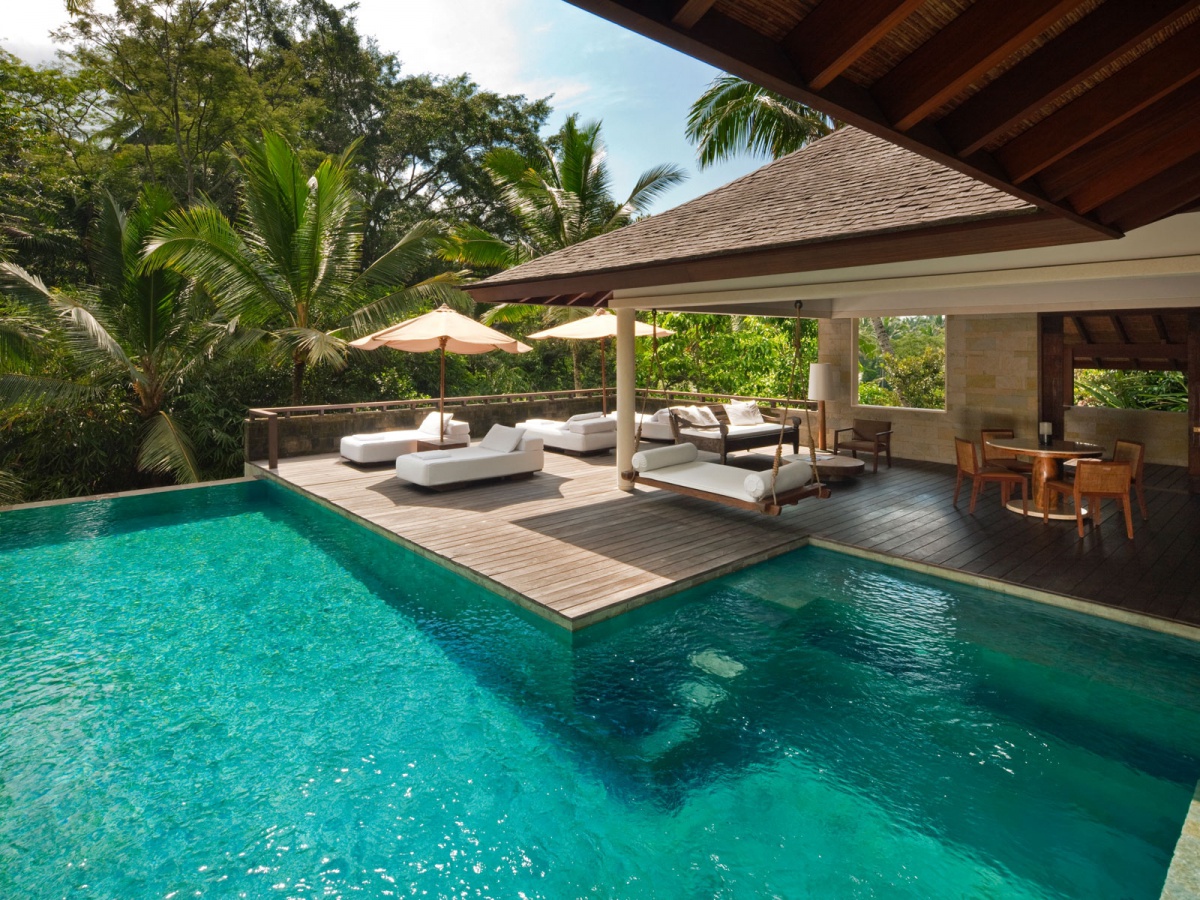 Резиденція Tirta Ening. У цій резиденції, назва якої означає "Чиста вода", домінують головний номер-люкс COMO Shambhala Suite площею 91 кв. м та вишуканий приватний японський водний сад із дивовижним водоспадом. Вся резиденція пронизана духом дзен-буддизму. Усюди можна почути тихий шум води. Їдальня та вітальня займають площу близько 113 квадратних метрів. Приголомшливий басейн. Центральний плавучий павільйон нагадує старі яванські будинки. Він побудований з тикового дерева і бату-кунінгу (жовтого каменю), а його дах покритий залізним деревом стилізованим під черепицю. Дуже цікаві також різьблені двері, кам'яні різьблені фігурки та старовинні китайські речі.