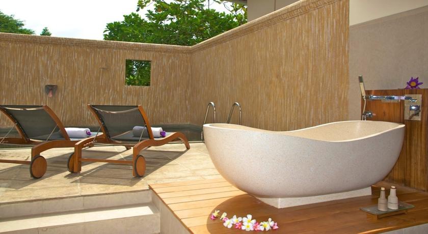 Полулюкс (65 кв. м): зона відпочинку в відкритому повітрі, спальня з вітальнею (кримінально-розмірний), зона для гардеробу, ванна кімната з ванною і душем в відкритому повітрі. На верхніх поверхах. Вид на океан.