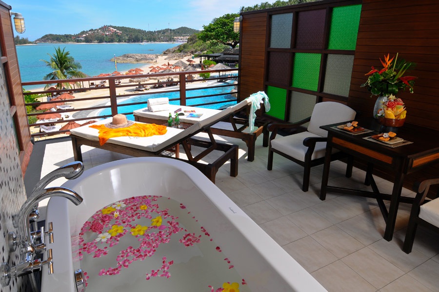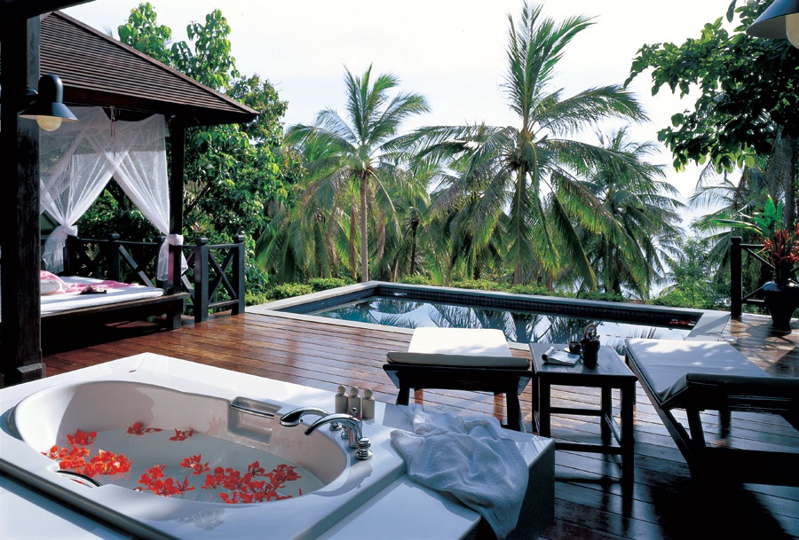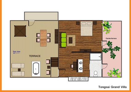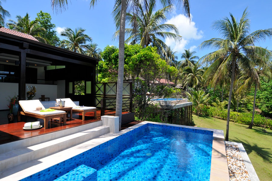 Tongsai басейн Вілла: 185 м2; оточений тропічним садом; складається з номеру 54 м2, вітальні; тераса 116 м2 з ванною, зона відпочинку, зона відпочинку ліжка під ліжкою, приватний басейн 3 х 5 м і частковий вид на море. Maybe два вілли. Максимальне розміщення 3 дорослих або 2 дітей.