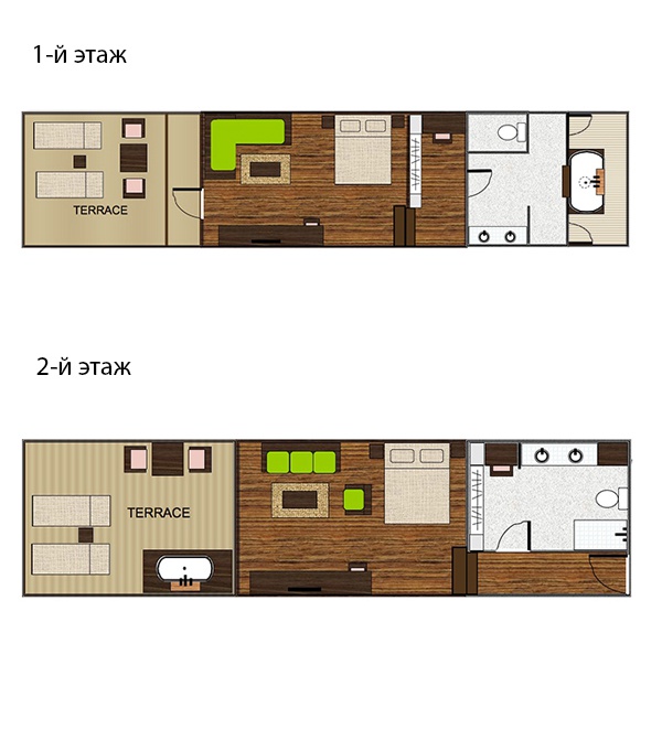 Полулюкс: 68-78 м2; розташований на вершині скелястого пагорба на морі; має 2 рівні, верхній рівень складається з спальні, житлової зони; нижній рівень складається з тераси з санвузлом, кафетерією і прямим видом на море (у деяких кімнатах, що оточують сад, частковий вид на море). Три дорослих.
