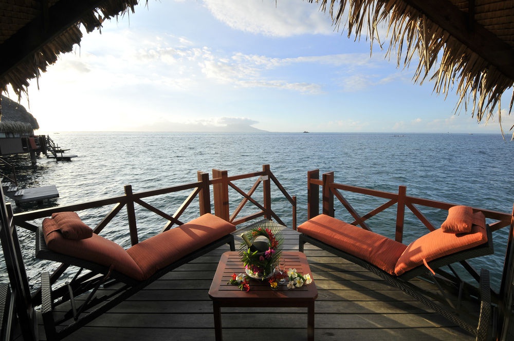 Мотут Бунгало - розташований на стику в воді на окремому острові з видом на острів Муреа, в стилі полінезія, що складається з спальні з житловою зоною, санвузлом, рекреаційною терасою і прямим випуском до води.