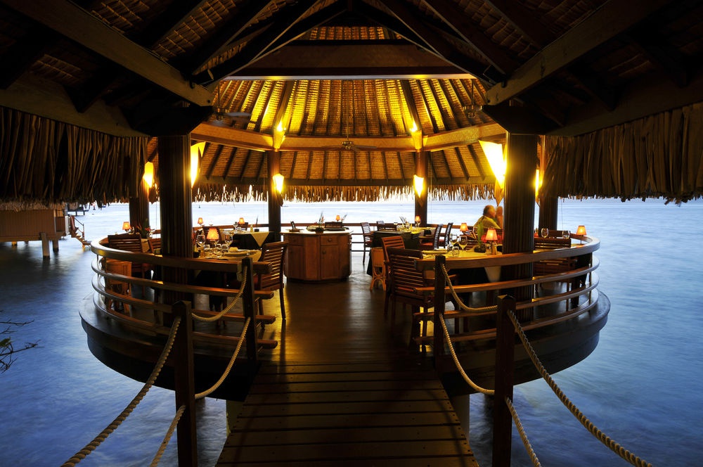 Ресторан Тіаре - розташований на першому поверсі готелю з видами на басейн, водоспад і острів Муреї, Таї та міжнародної кухні.Ресторан Le Lotus Overwater - в лагуні на воді, гастрономічний ресторан, французька кухня.