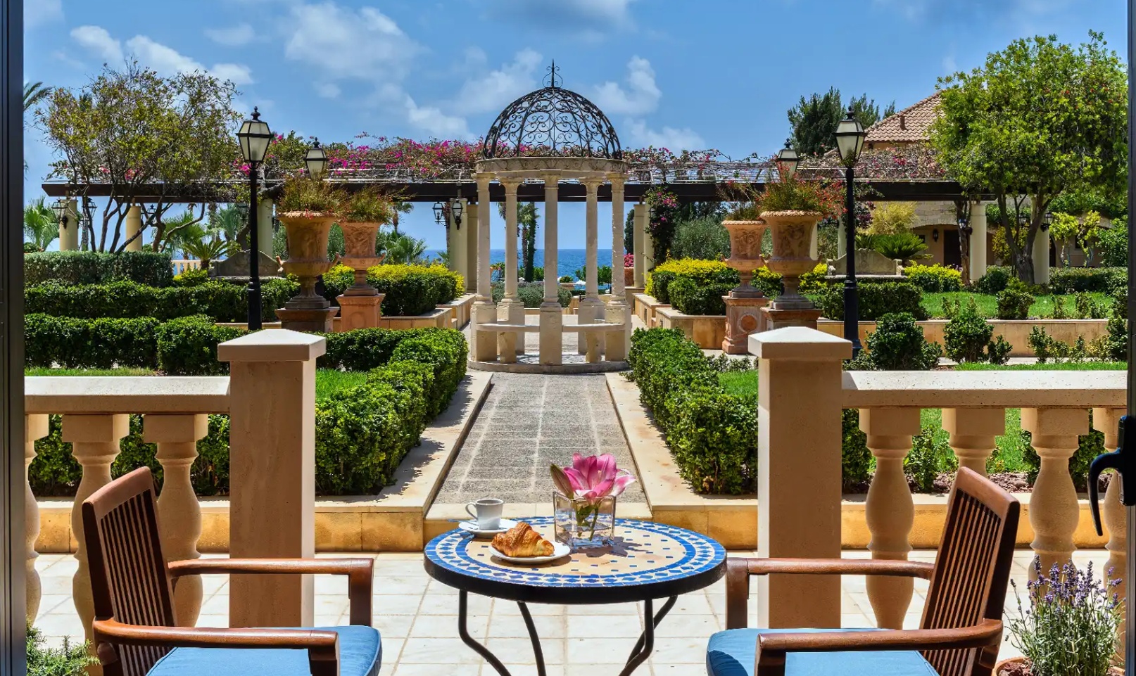 Стиль Café Oriental відображає простоту та розкіш періоду візантійського панування на Кіпрі. В оточенні східних люстр, білого мармуру, аркових склепінь, що нависають, і майстерно розписаних стель гості зможуть спробувати традиційні солодощі, чудову каву і насолодитися ароматною сигарою.