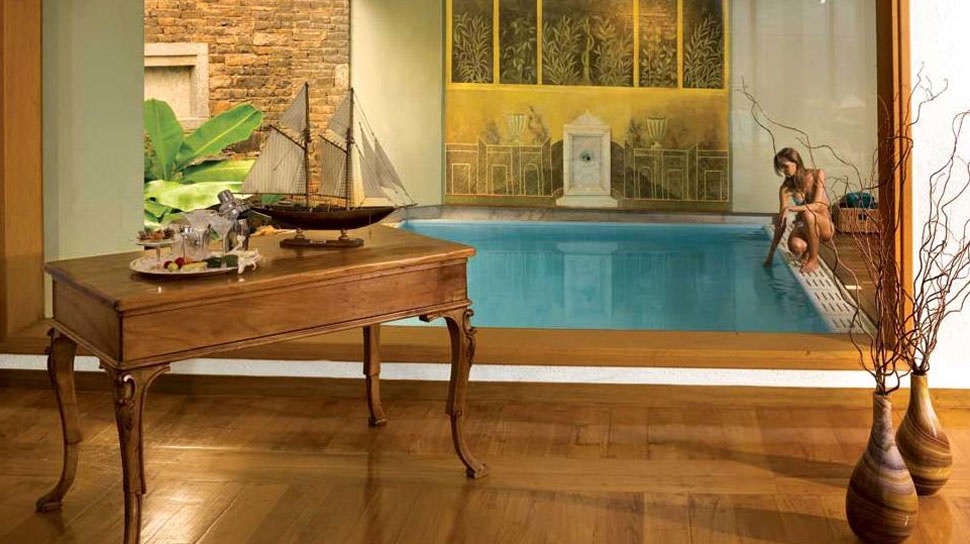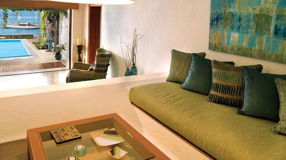 Площа 80 кв. м. Просторий двоповерховий люкс з однією спальнею, вітальнею, мармуровою ванною кімнатою з ванною і душовою кабіною, додатковим душем і туалетом. Також є приватний басейн із морською водою і підігрівом.