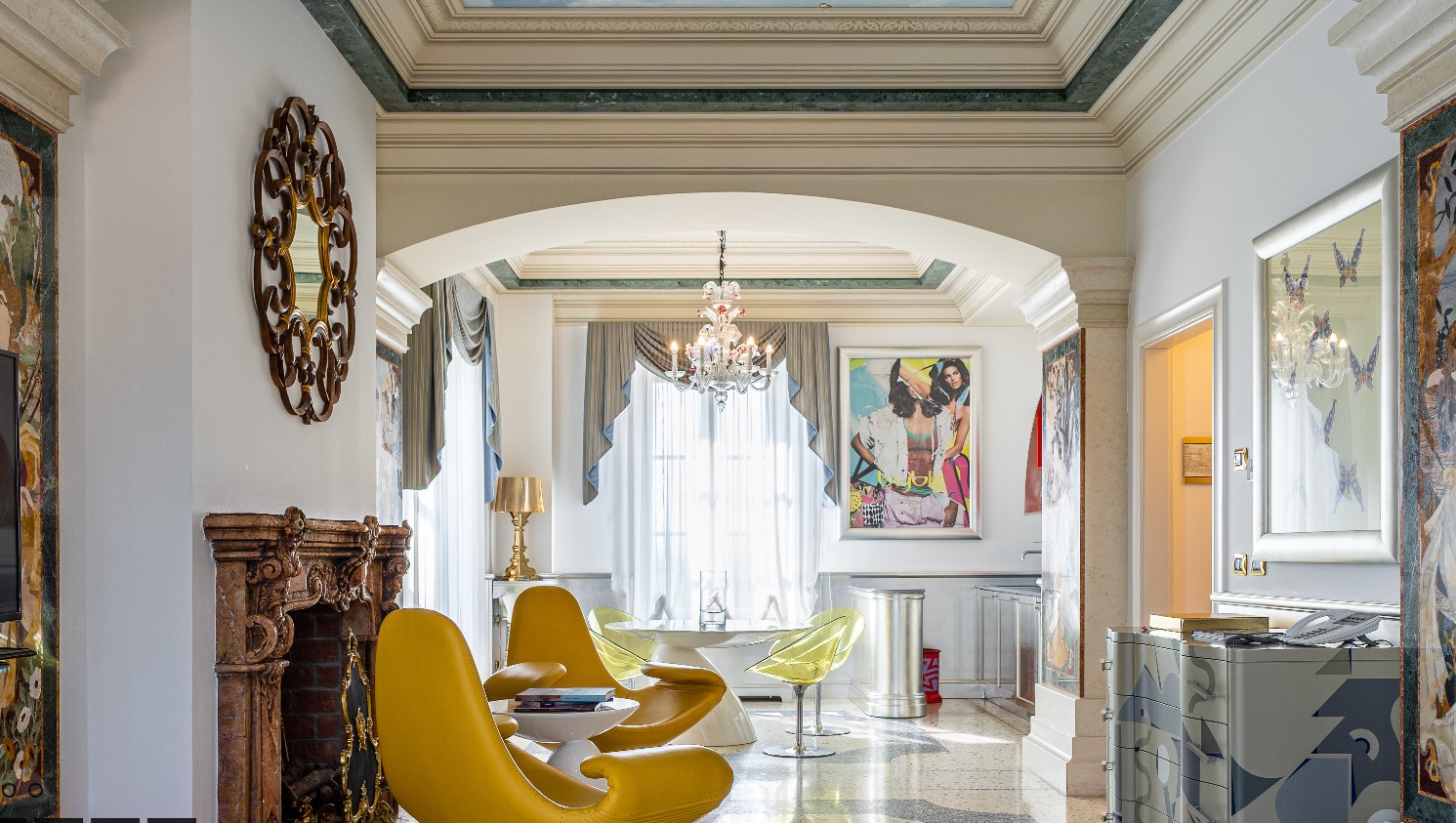Проект реконструкції був заснований на поєднанні трьох компонентів: перший – модернізація меблів, тканин та драпірування була виконана з особливою увагою до кольорів та іконографії XVI та XVII століття; другий — елементи інтер'єру та меблювання були ретельно підібрані (світильники, столові прилади Gio Ponti, меблі Saarinen, дерев'яні столи та стільці Франка Ллойда Райта та Альдо Россі для винного підвалу); третій – результат пристрасті до мистецтва власника Діно Факкіні та його дочки Маші, це – роботи відомих художників, які прикрашають інтер'єри готелю.