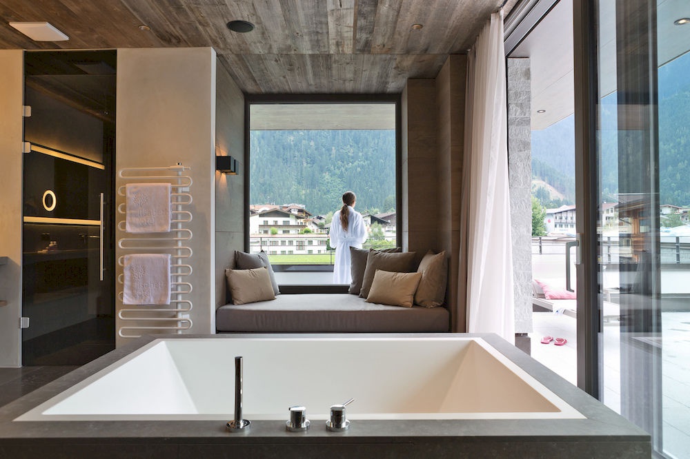 Полулюкс (ЕлізабетГіммель або Резінц) - 100 м2. Розташований на 2 і 3 поверхах, він складається з вітальні (у деяких номерах з тироловою піччю), двох спальних кімнат, однієї або двох санвузлів (одна з джакузі і парової бані), окремої туалетної кімнати, балкона або тераси з видом на сад.