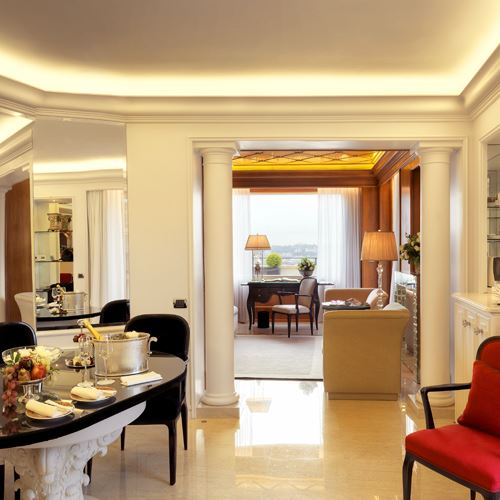 77 кв. м. Номер розташований на другому поверсі, з унікальним видом на Іспанські сходи. Складається з вітальні, спальні, декорованої у світлих тонах, невеликого кабінету та балкону, мармурової ванної кімнати кремового кольору з підлоговою мозаїкою, джакузі, двох раковин, ванни, душової кабіни та окремого туалету, гостьовий санвузол має одну раковину та туалет. Номер може бути поєднуватися з двома 2 Double Rooms. Розміщення: 3 особи.