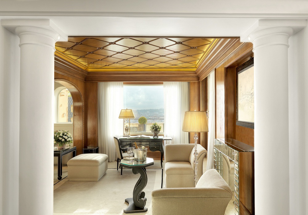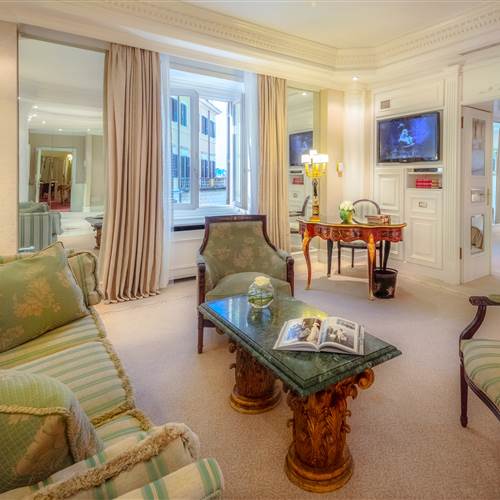 50 кв. м. Просторий номер, складається зі спальні, вбиральні, вітальні, ванної кімнати, гостьової вбиральні. З видом на сад або місто. Може з'єднуватись з іншими номерами. Розміщення: 3 особи