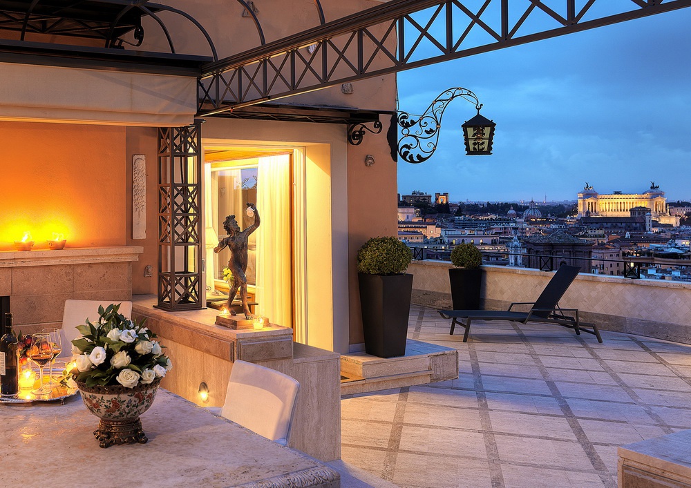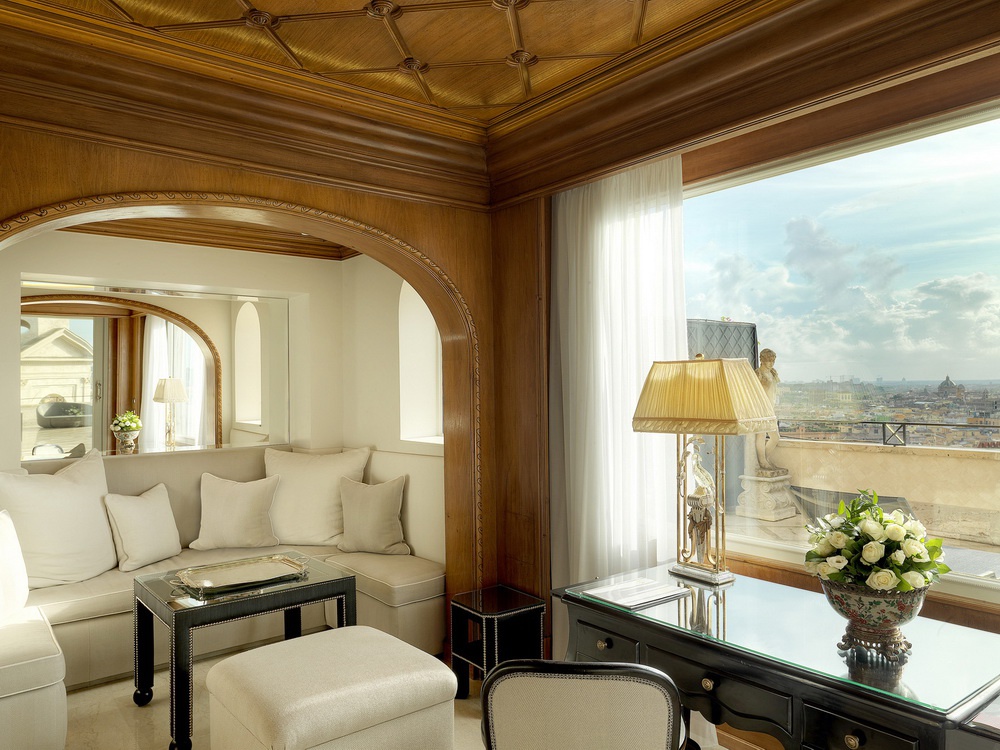 60 кв. м. Розташовані на верхніх поверхах готелю, з номерів даної категорії відкривається мальовничий краєвид на місто Рим, в кожному люксі є простора вітальня, затишна спальня з великою гардеробною, світла мармурова ванна кімната з видом на віллу Боргезе Гарденс та гостьовий санвузол. Розміщення: 3 особи