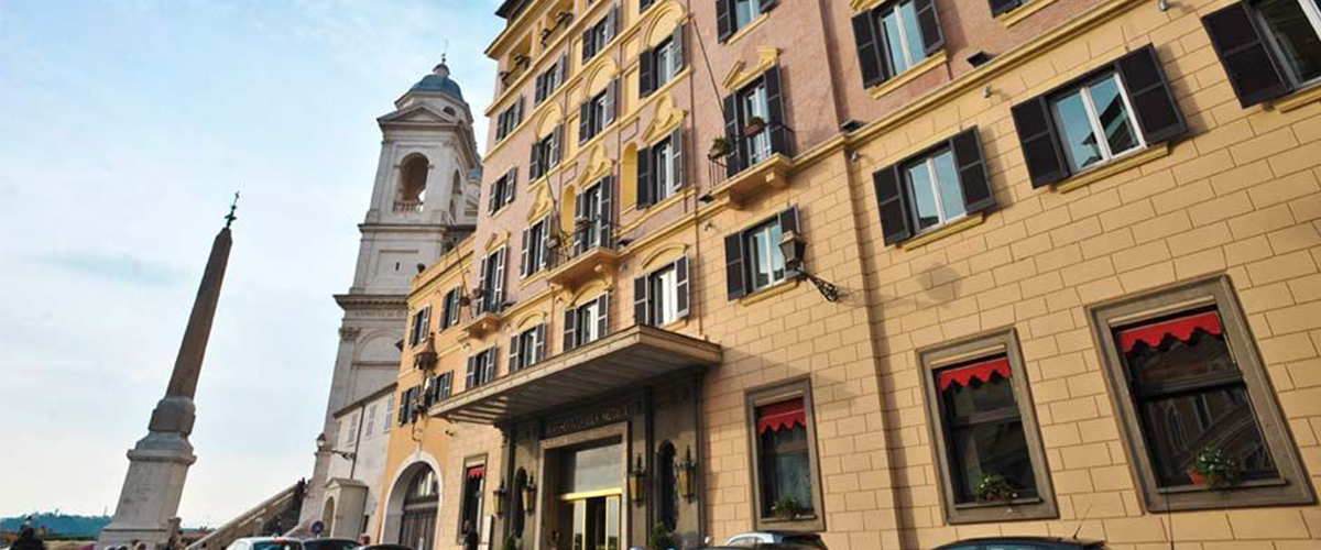 Шикарний та елегантний готель розмістився в самому серці Риму, на вершині грандіозних Іспанських сходів. Готель відкрив свої двері наприкінці XIX століття завдяки зусиллям сім'ї зі Швейцарії Хаслер, яка змогла передати елегантну розкіш у поєднанні із сучасними зручностями. Кожен номер готелю має індивідуальний дизайн, в обробці використані шляхетні породи дерева, мармур, дорогі розкішні тканини. Внутрішнє оздоблення складає антикварні меблі, оригінальні предмети мистецтва, розкішні килими та люстри з венеціанського скла. Вікна готелю дарують гостям чудову міську панораму історичного Риму.