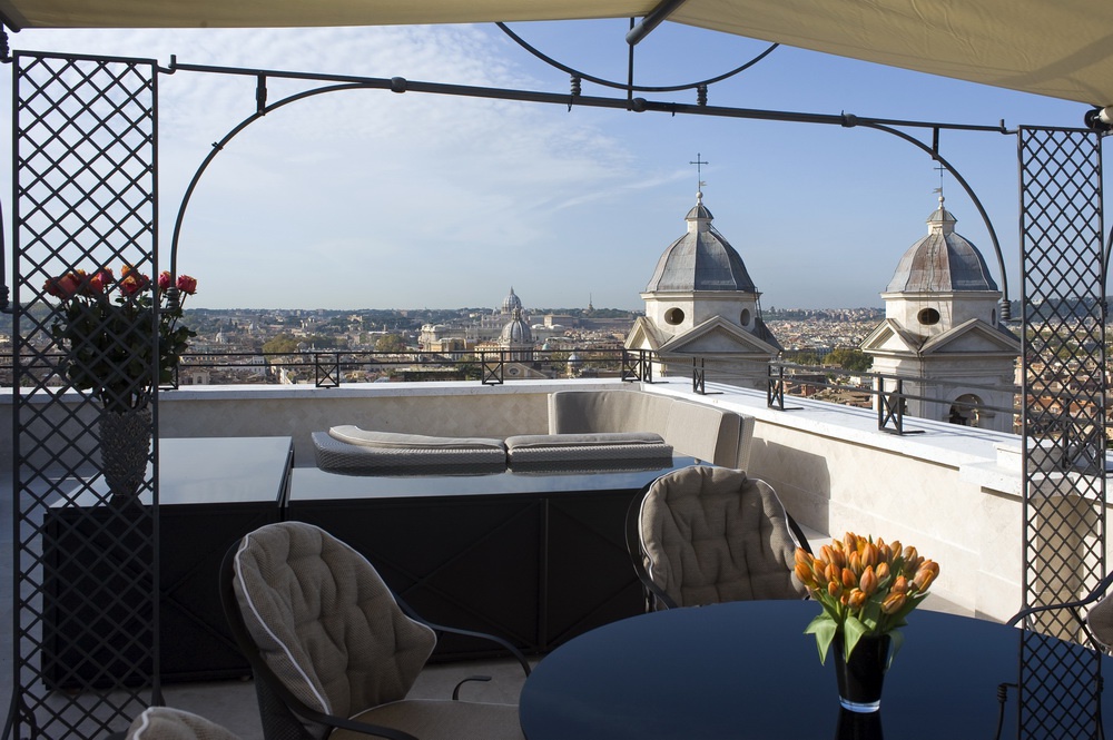 180 кв. м. Просторий номер у кремових тонах розташований на 6 поверсі готелю, з нього відкривається захоплюючий краєвид на купол Сан-П'єтро. Складається зі спальні, вітальні з обідньою зоною, головної ванної кімнати з білого та сірого мармуру (з двома раковинами та окремим душем та ванною), а також другої гостьової ванної кімнати. Тераси з мебльованою зоною відпочинку, шезлонгами. Може з'єднуватись з Double Rooms. Розміщення: 3 особи.