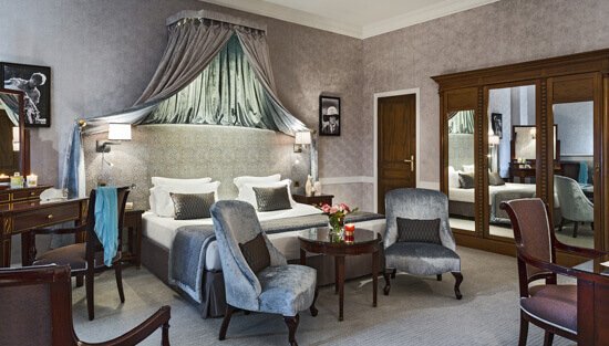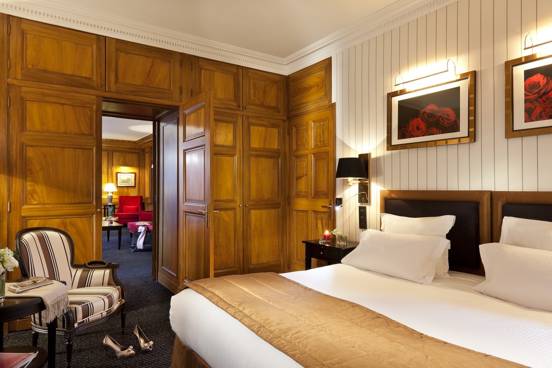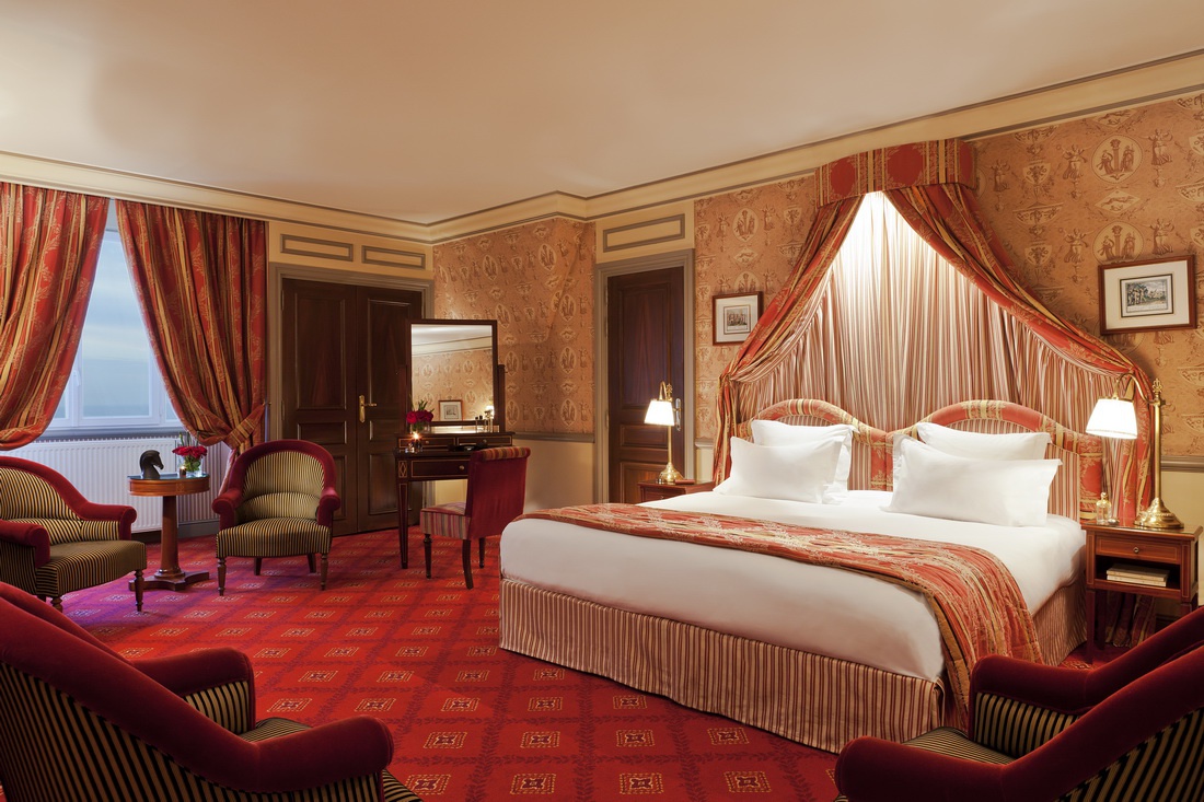 Пориньте у світ привілеїв і відкрийте для себе 120 м² вишуканості. Королівський люкс з винятковим приватним садом, затишною вітальнею, прикрашеною дерев’яними панелями, і розкішною мармуровою ванною кімнатою присвячений класичній французькій елегантності.