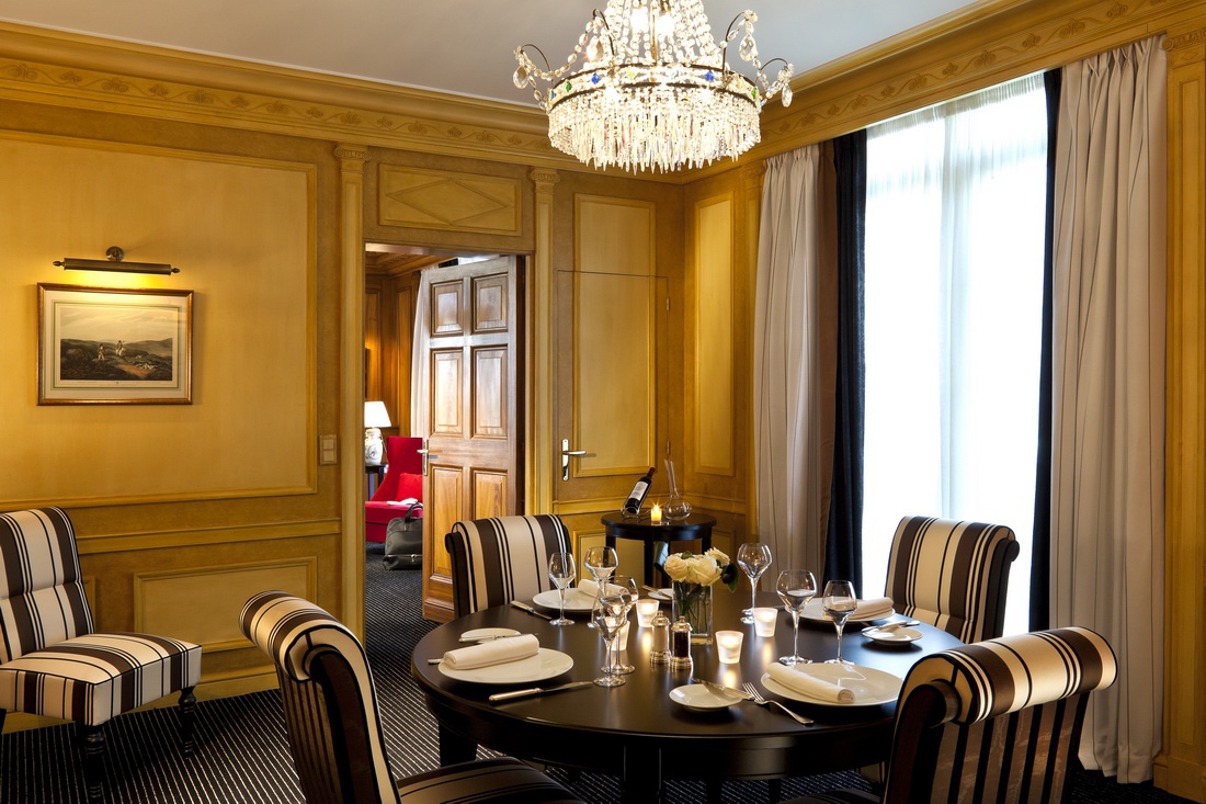 Відчуйте просторий комфорт вишуканої кімнати, підсилений вишуканим блиском деревини венге та ніжних відтінків тканини. Пообідайте під розкішною кришталевою люстрою в їдальні або насолодіться коктейлем у затишній обстановці приватного саду. Королівський люкс готелю Le Royal Deauville за запитом може бути персоналізований, щоб перетворитися на дворівневу квартиру, з’єднану з трьома кімнатами поверхом вище. Виберіть виняткове, з особливим шампанським.