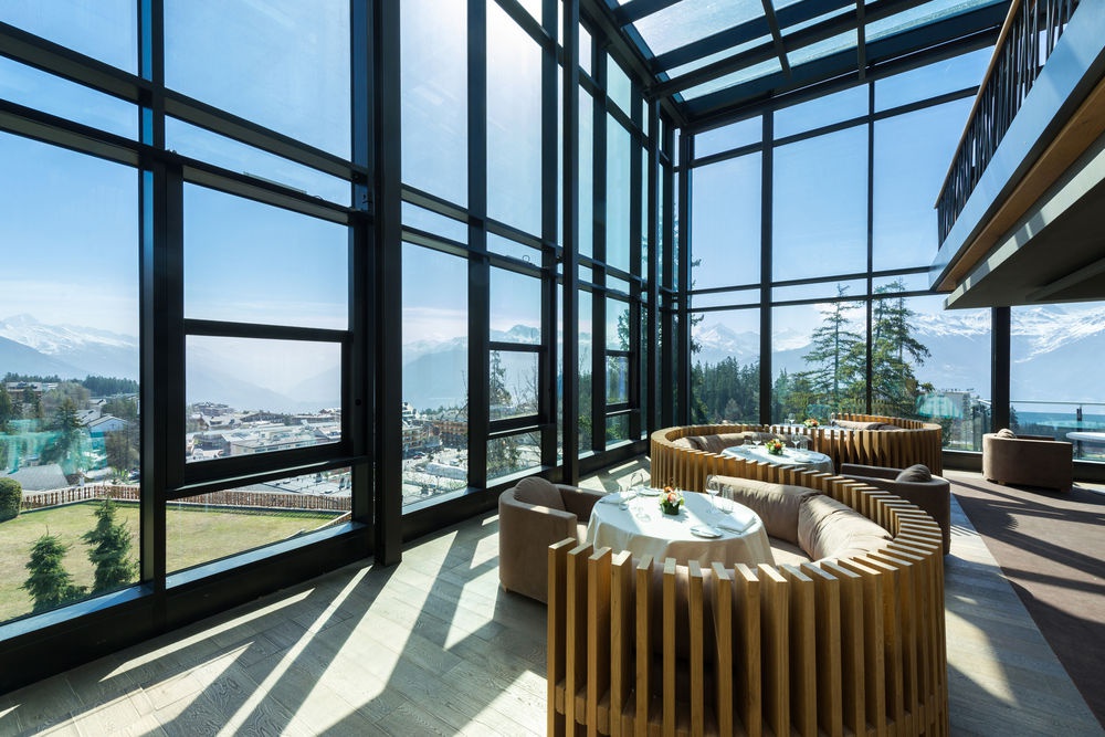 У ресторані готелю ви зможете насолодитися різноманітними стравами з свіжих сезонних продуктів, смачними закусками та чарівними видами на околиці. У барі ви маєте багатий вибір напоїв та незвичайних коктейлів, які завоювали битву за швейцарським хвоском у 2015 році. Ресторан Carnotzet By Hublot з кращими винами, багатим різноманіттям сиру і м'яса.