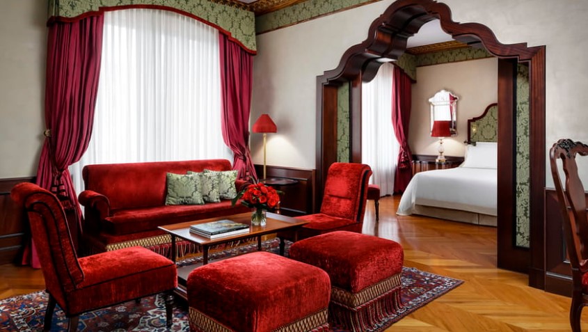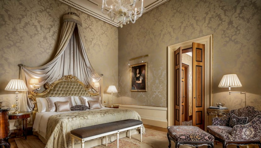 Оновлений дизайн від Жака Гарсіа ілюструє багату драму готичної епохи. З власного балкона відкривається прекрасний вид на венеціанську лагуну.