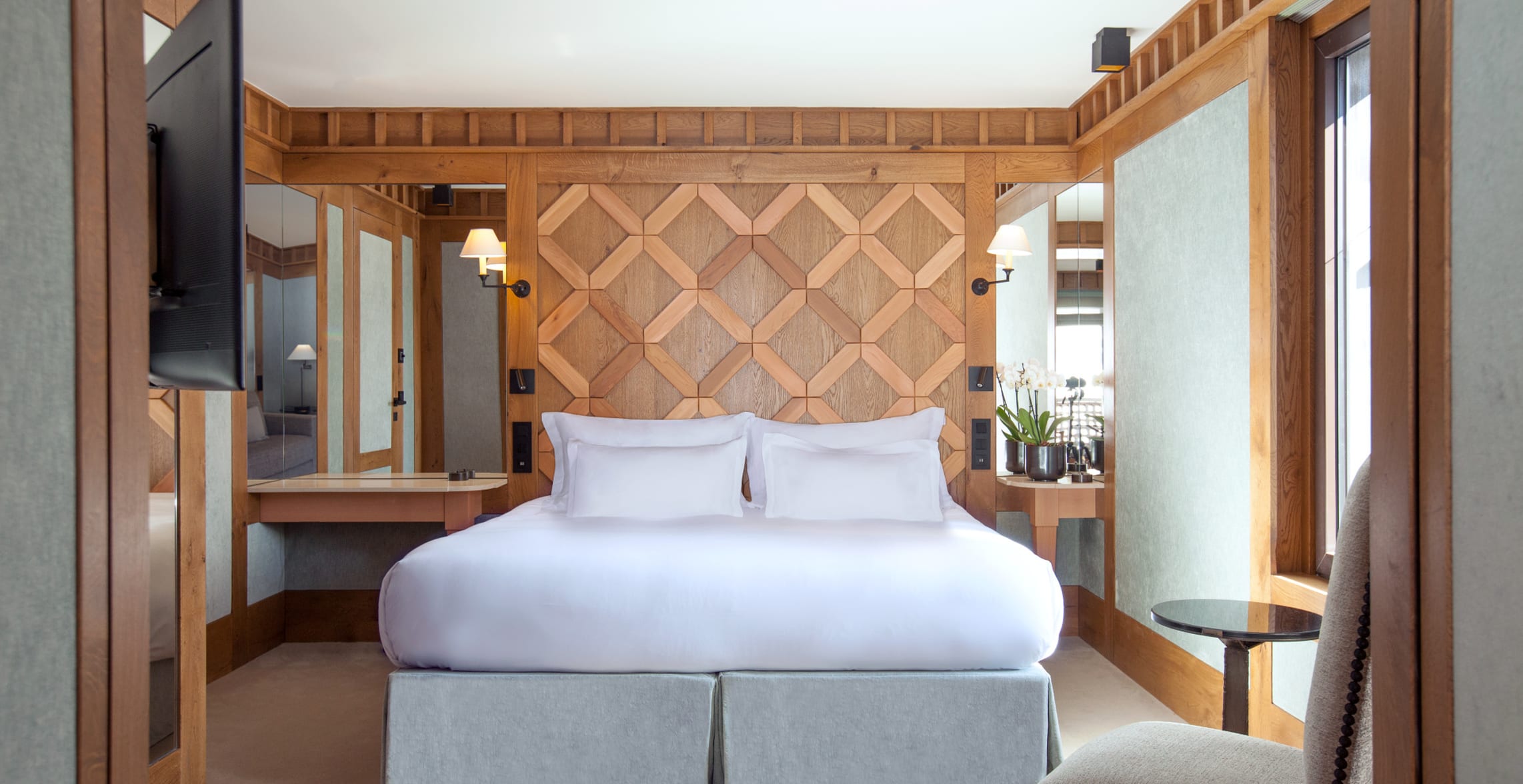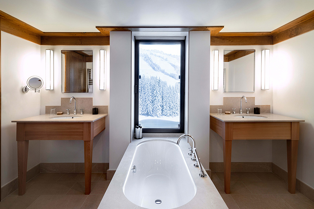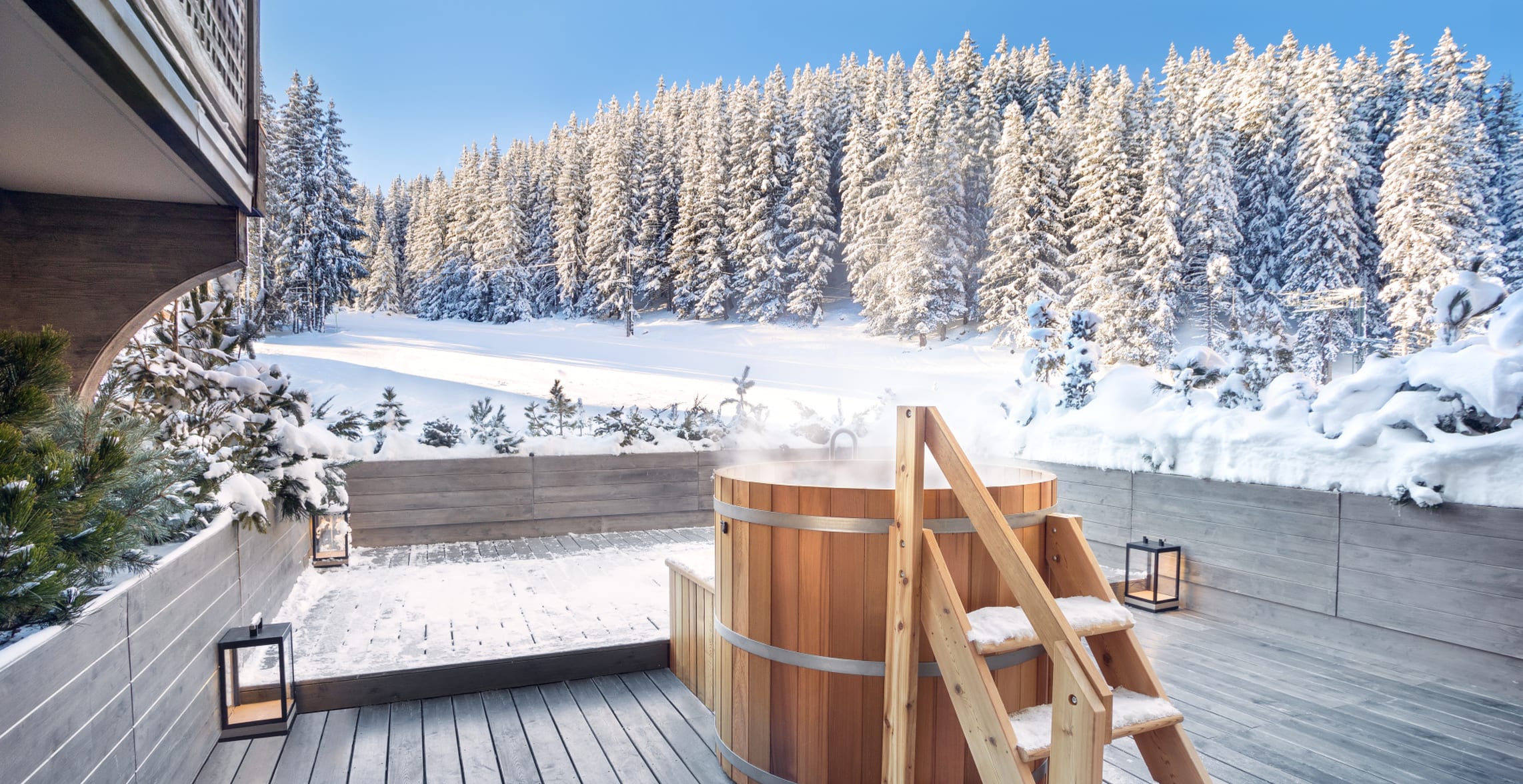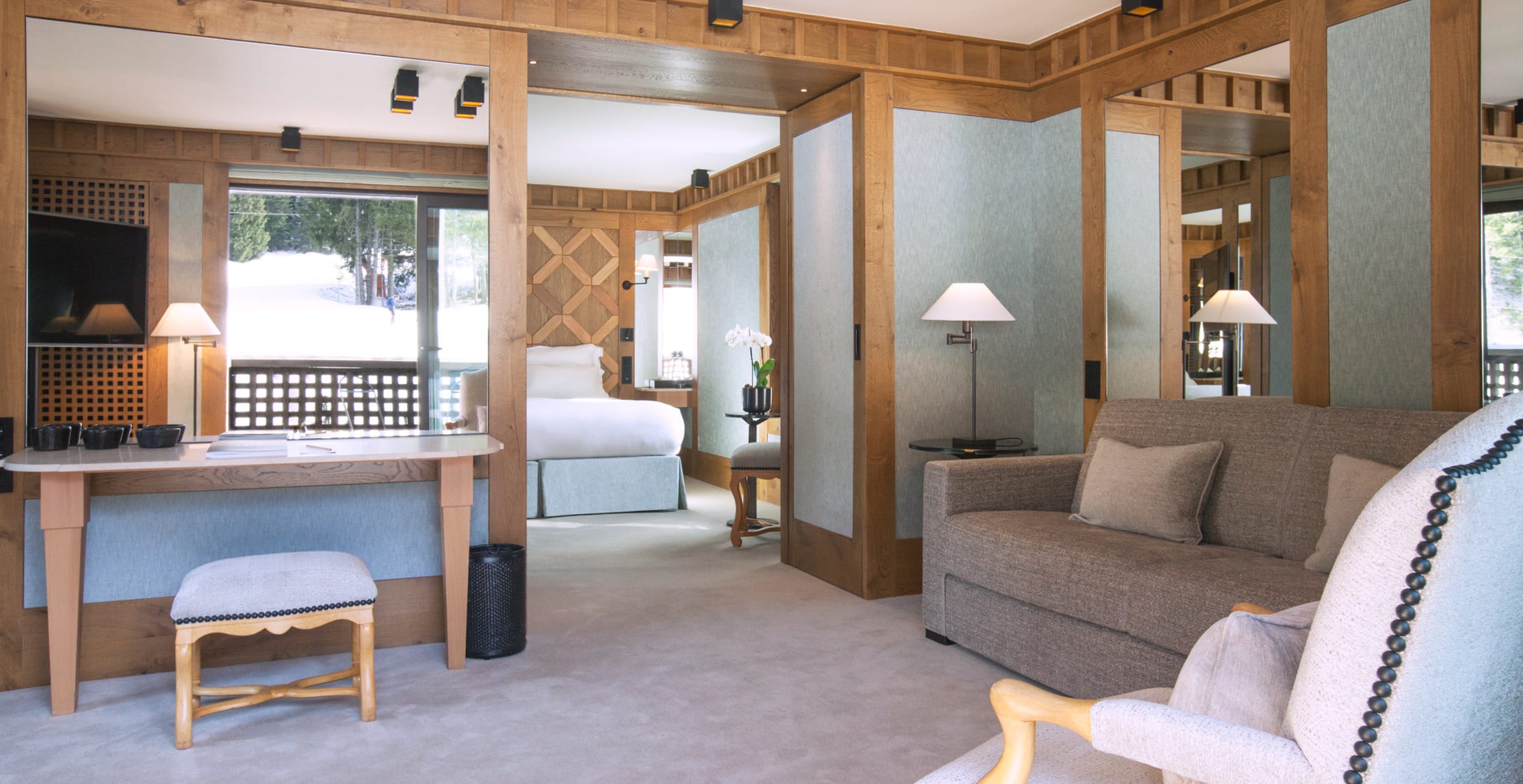 Aman Le Melezin пропонує гостям номери та люкси, з яких відкривається панорамний вид на засніжені вершини, що височіють на тлі чистого альпійського неба.