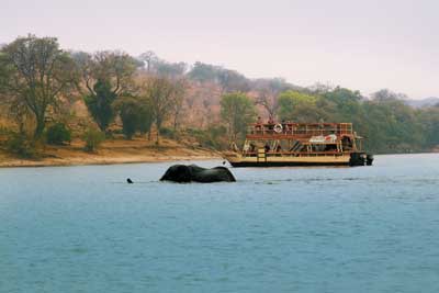 У чарівному ресторані кращі продукти європейської та африканської кухні, в дворі великої кішки, вони служать легкими закусками, в барі з видом на картину на річку, вони пропонують вишукане вино для дому. У готелі є великий відкритий басейн для активного відпочинку, гольф поле 9 отворів і волейбол сайт. Є буффало, hippopotams, леви, гіни та багато рідкісних птахів у сусідньому Чобеському національному парку, є великі африканські слони.