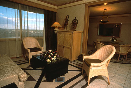 Готель знаходиться в самому центрі міста, недалеко від Міжнародного конгрес-центру, в 1 км від центру міста. 17-ступенева будівля в сучасному стилі, у вигляді двох спільних веж з широкими панелями скла, вбудована в середину парку. Інтернс організовано африканським прикладним мистецтвом. Іскровий лобі з мармуровим покриттям забезпечує комфортні дерев'яні меблі, освітлені м'яким світлом. У готелі є центр краси і здоров'я з масажними кімнатами, саунами, салоном перукарні і гімнастики з гімнастики, а також відкритим басейном, 11 конференц-залами, бізнес-центром, парком, туристичним агентством, подарунковим магазином, барами і 4 місцевими, французькими і європейськими кухнями.