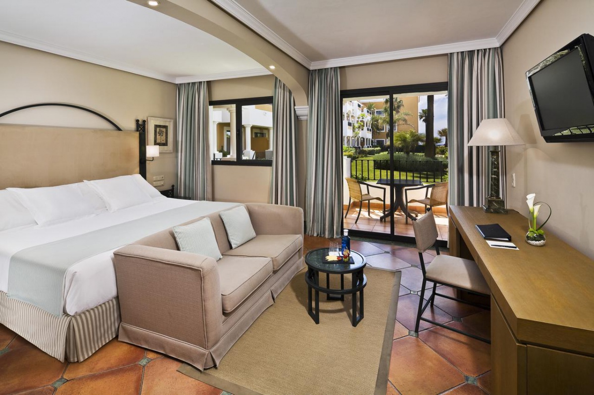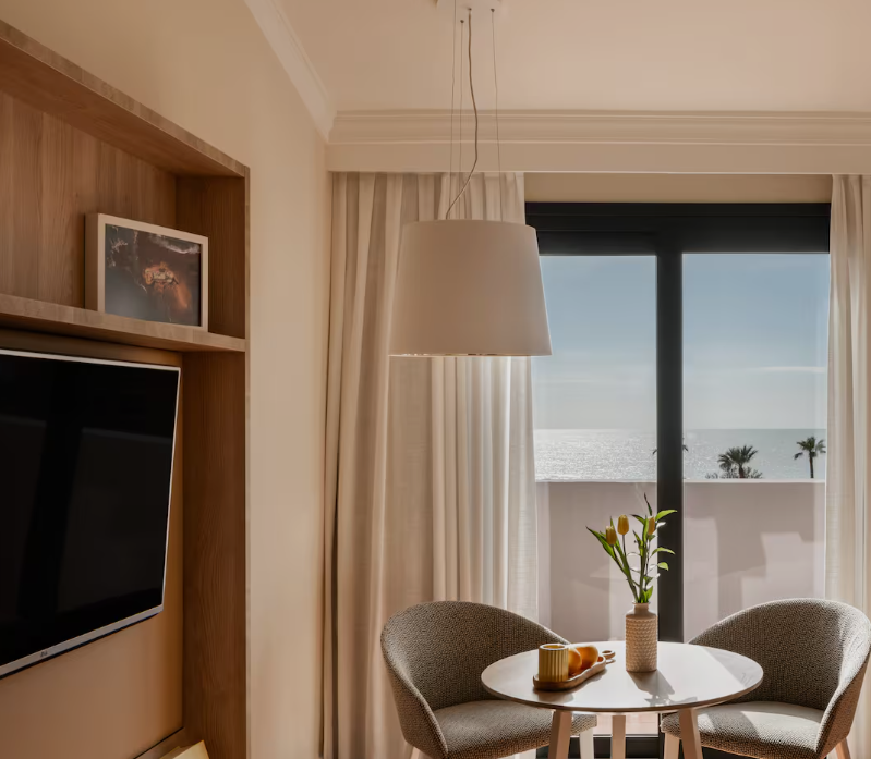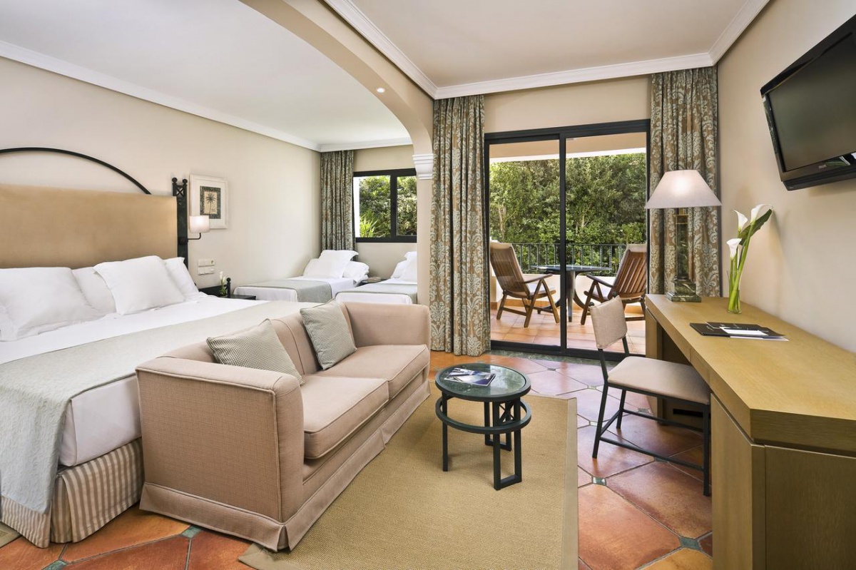 Ефектний басейн із фонтаном відкриває шлях до океану між пальмами та квітами. Погода, пейзажі та арабські впливи в архітектурі Palacio de Sancti Petri Gran Meliá створюють непереборне поєднання, у якому діти також мають власний приватний простір. Запрошення на відпочинок із садовими ділянками, балійськими ліжками та екзотичною паладою просто неба.