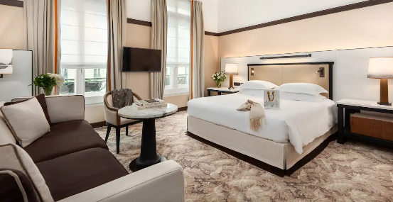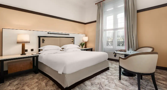 Живіть як справжній парижанин у своєму захоплюючому люксі площею 645 фут² (60 м²) з видом на паризькі дахи та церкву Святого Августина. У вашому паризькому люксі є велика спальня з двоспальним ліжком розміру "king-size", вітальня з диваном-ліжком, шафа, мармурова ванна кімната з подвійною раковиною, окремою ванною та тропічним душем.