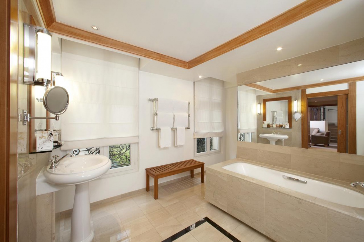 Люкс «Ейфелева вежа», наче футляр для коштовностей, залитий світлом. До послуг гостей три балкони Juliette, спальня з одним двоспальним ліжком розміру "king-size", гардеробна, вітальня та чудова мармурова ванна кімната з подвійним умивальником, окремою ванною та тропічним душем.