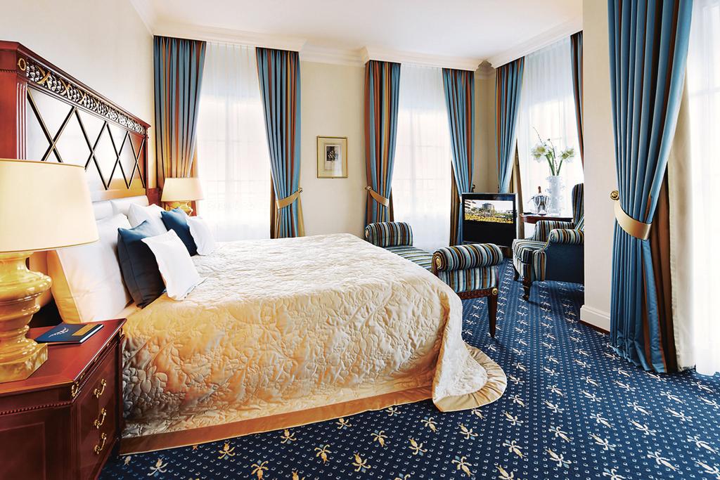 Suite: 60 кв.м. Історична кімната розташована в крилі Palais. Складається зі спальні та ванної кімнати з біло-коричневого мармуру; всі кімнати мають балкон з видом на сад.