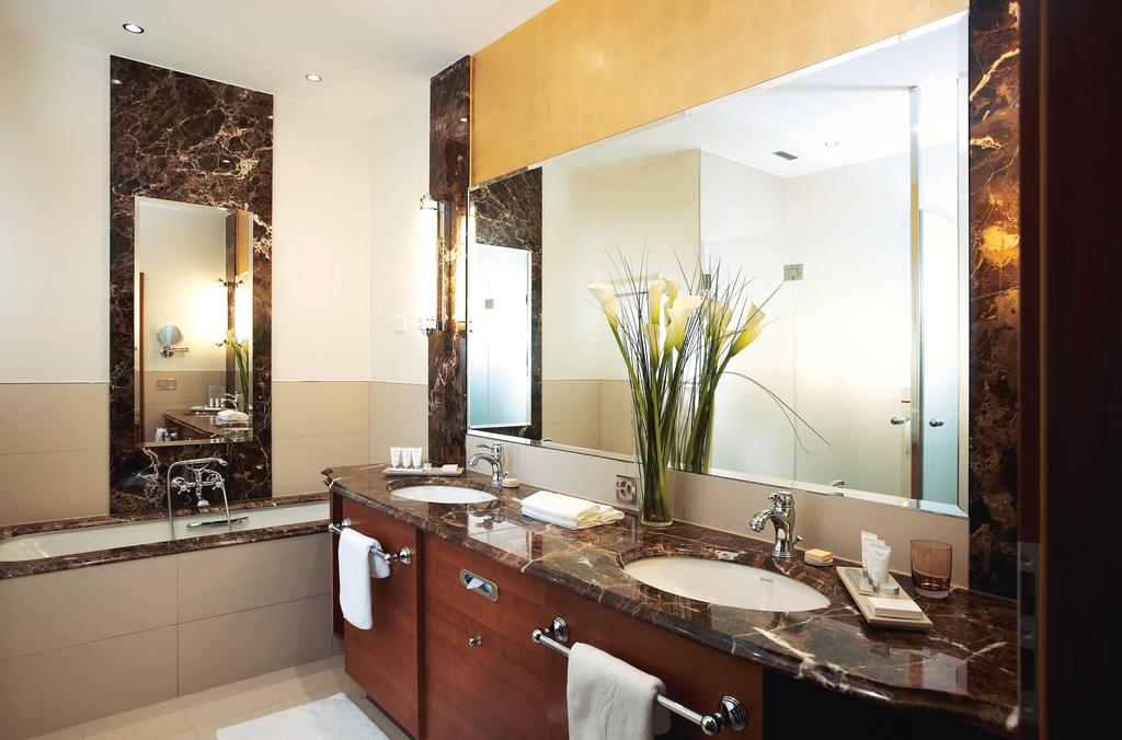 Grand Deluxe Suite: 64-77 кв.м. Номер виконаний в елегантному сучасному стилі та витриманий у теплих жовто-коричневих тонах, складається зі спальні, вітальні або вітальні зони, ванної кімнати, обробленої біло-коричневим мармуром, виходить на парк, деякі номери цієї категорії мають балкони.