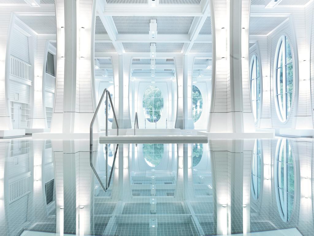 Swan Room: 70 кв.м. Чудовий номер з індивідуальним розкішним декором, основним мотивом якого є зображення лебедя. Розташований в історичному палаці Palais, складається зі спальні з ліжком під балдахіном, вітальнею та обідньою зоною, ванною кімнатою, виходить на парк і гори.